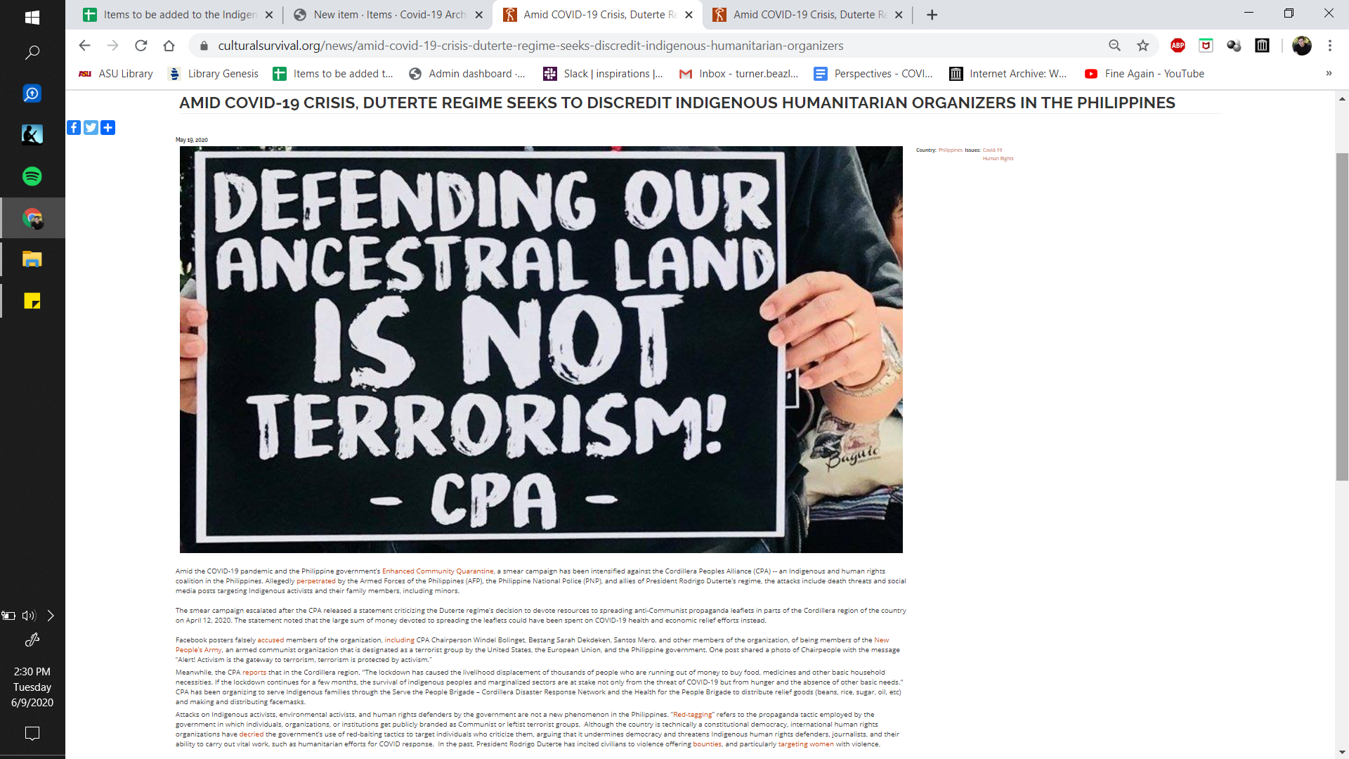 Amid COVID-19 Crisis, Duterte Regime Seeks to Discredit Indigenous Humanitarian Organizers in the Philippines