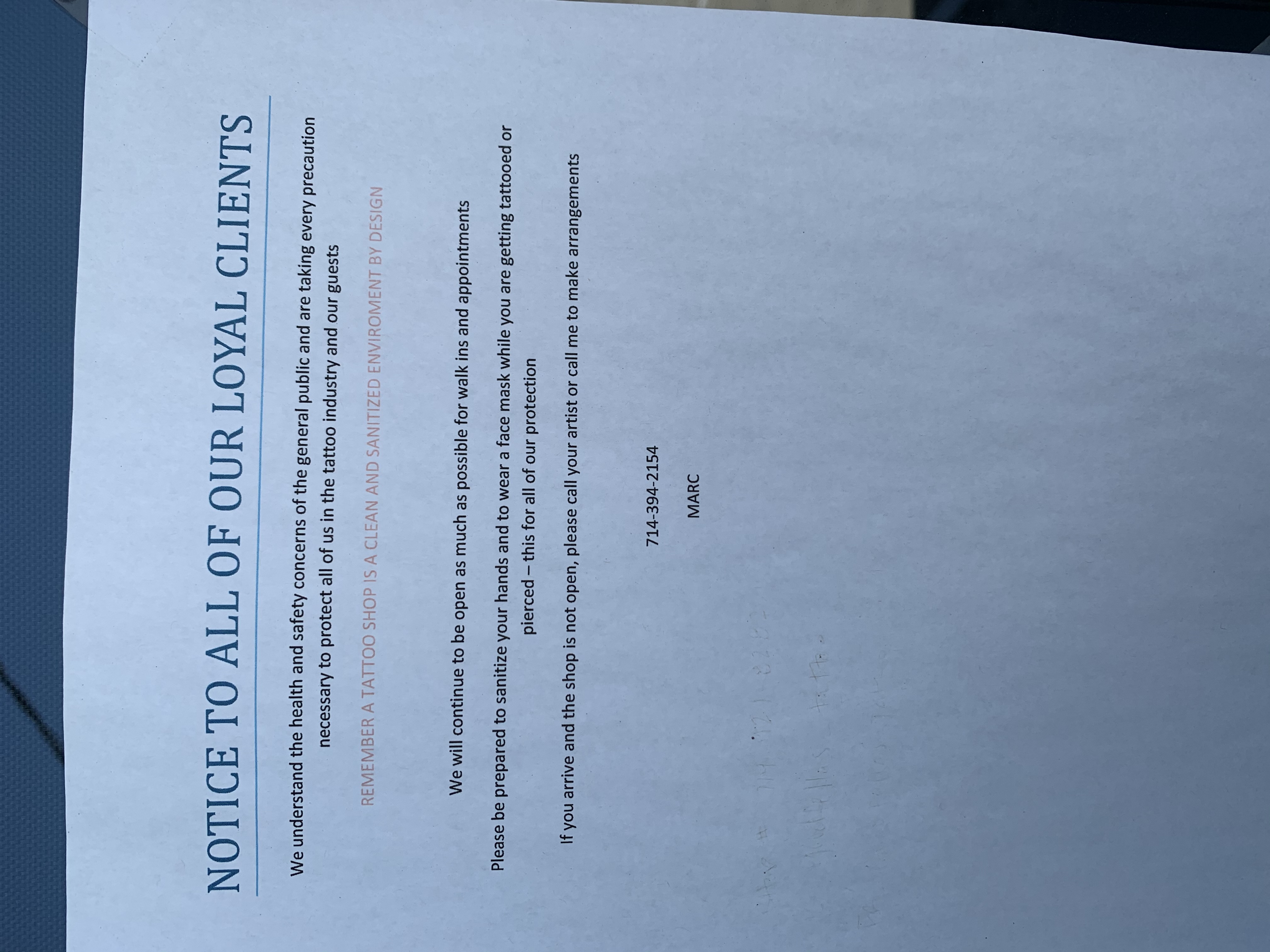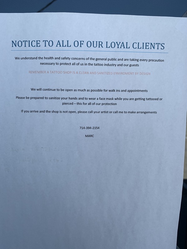 As Orange County has started to enter the various reopening phases set out by the government of California, there remains some anxiety about the safety and cleanliness of stores that are non-essential businesses. One of local tattoo parlors in the City of Orange posted a reminder to prospective clients about the general cleanliness of tattoo parlors, as well as the extra steps being taken to ensure safety.