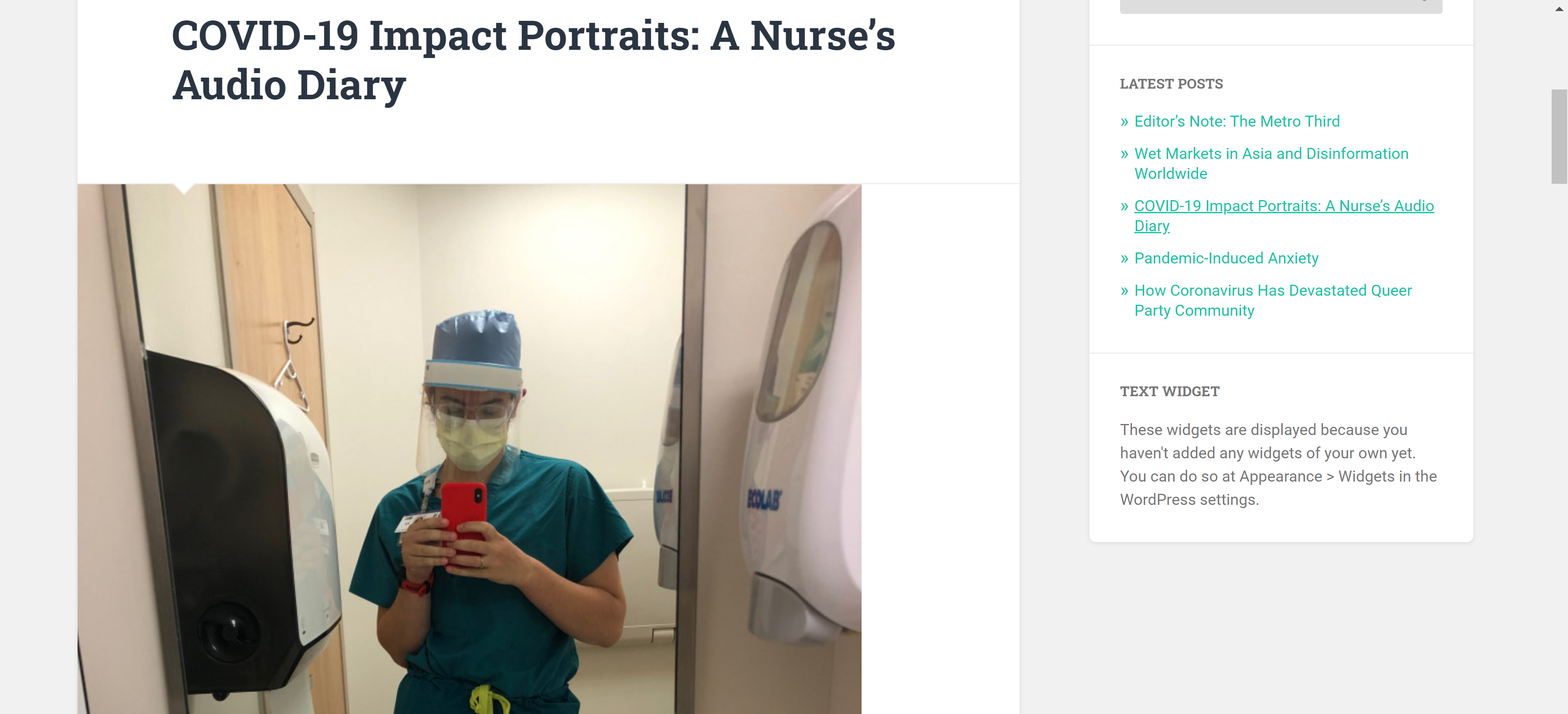 COVID-19 Impact Portraits: A Nurse’s Audio Diary