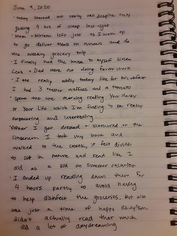 I'm a nursing student living at home on the family farm and I'm struggling to get a job. I've been sporadically journalling throughout the pandemic. This entry looks at what my day looked like an some thoughts about the current situation.