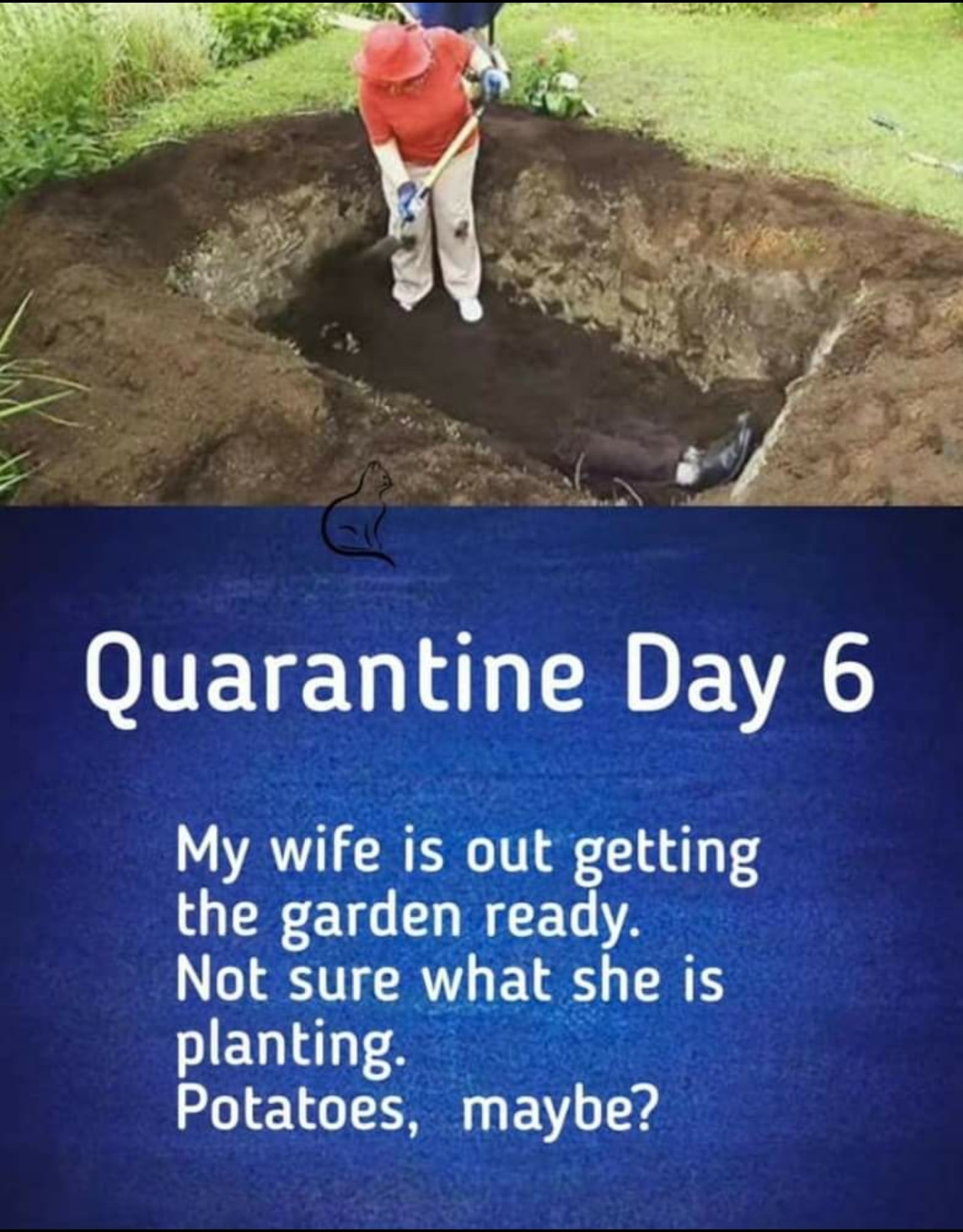 When COVID-19 hit and we were all quarantined with our families, the cracks in our relationships began to fracture in some cases. There were a lot of jokes about marriage and this meme shows that this particular couple had fissures so big and the wife was so desperate, she was digging a grave.
