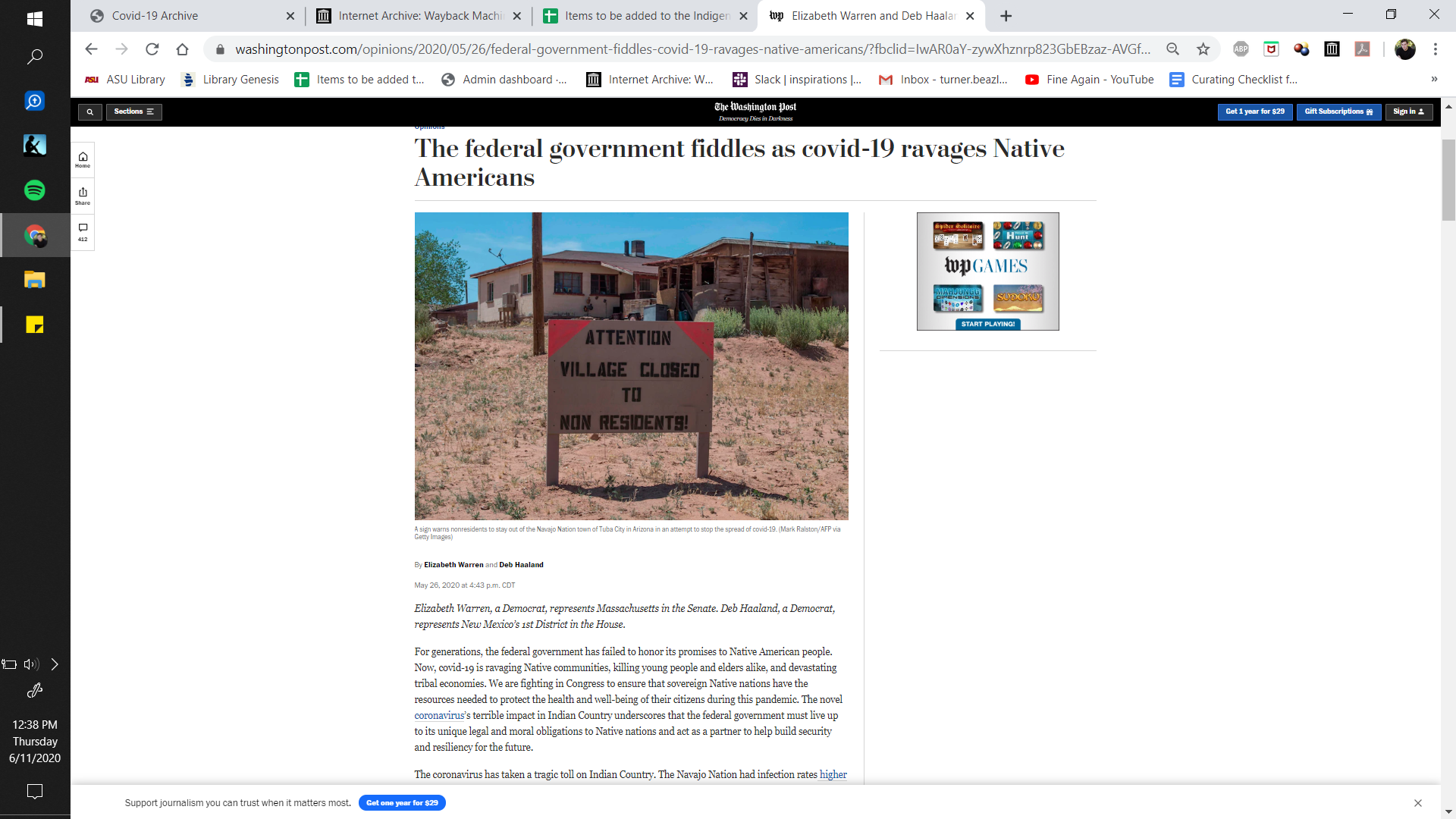 Elizabeth Warren and Deb Haaland Criticize Federal Responses to Pandemic in Indian Country as “COVID-19 Ravages Native Americans”