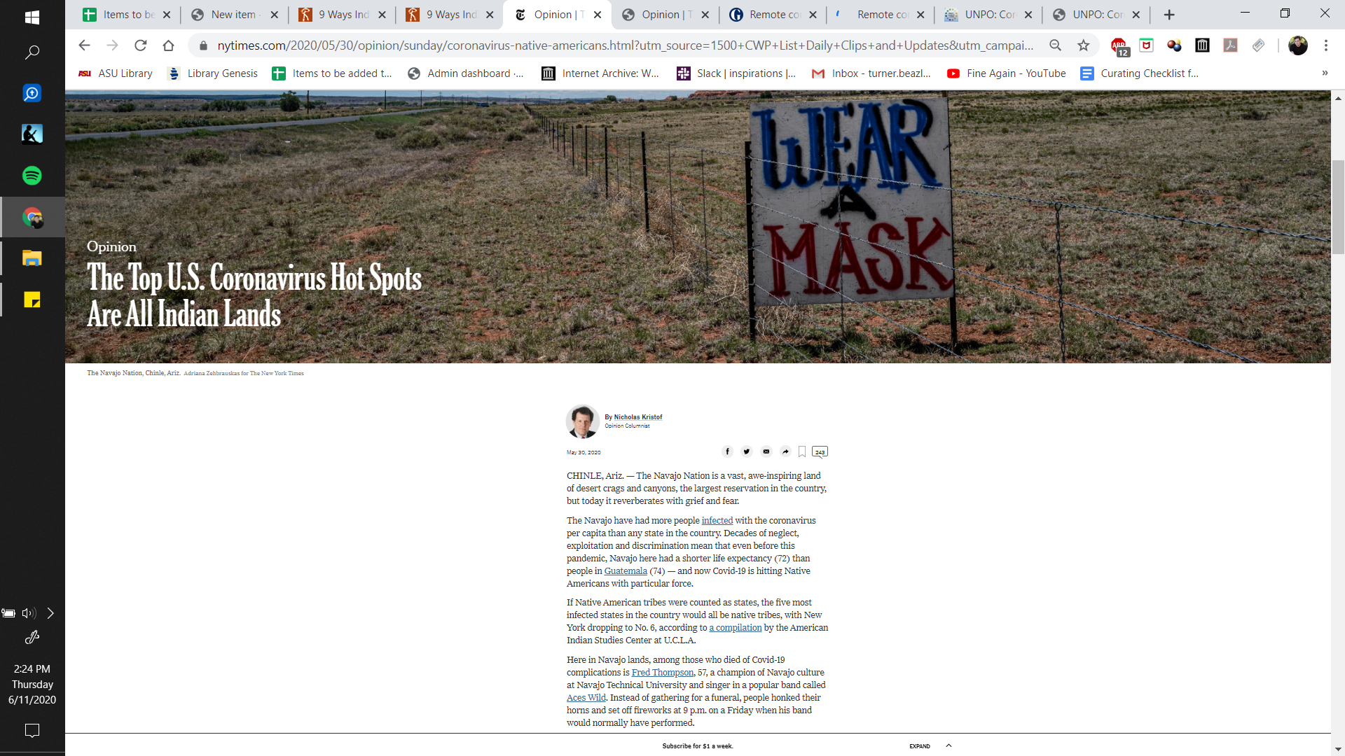“If Native American tribes were counted as states, the five most infected states in the country would all be native tribes, with New York dropping to No. 6, according to a compilation by the American Indian Studies Center at U.C.L.A.”