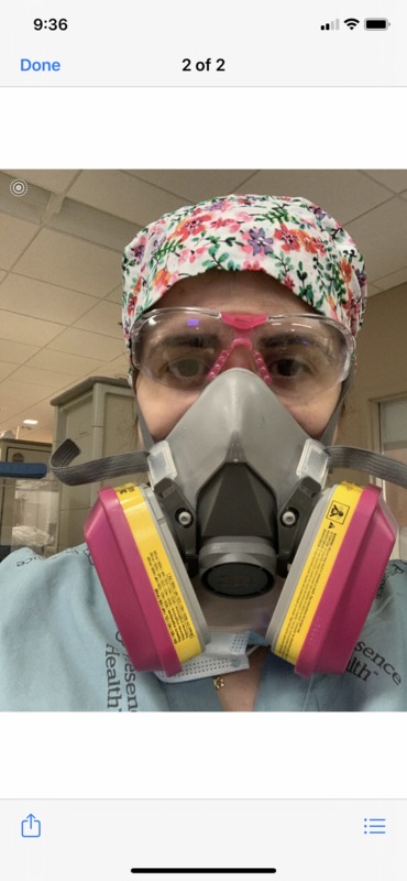 This is my daughter who works in a downtown Chicago hospital in the ER. I am her mother submitting this, and I gave her my artist mask to protect herself from Covid. This was at the beginning when there was a lack of PPE.This picture is important to me because she is a second you’re nursing individual and she has worked very hard in the pandemic like all the other nurses and doctors.