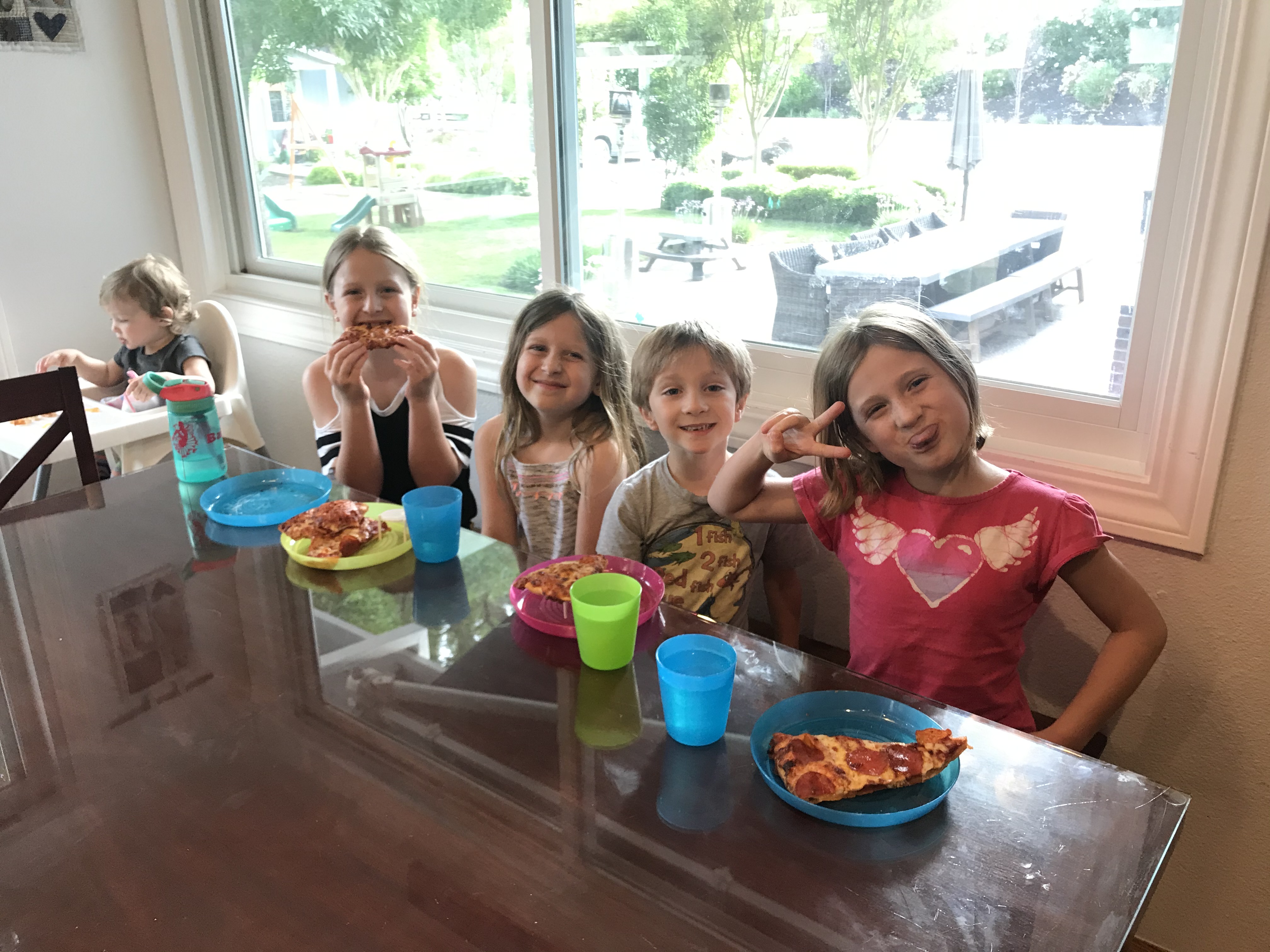Cousins, Claire Gagnon (1), Taylor Anderson (10), Jessie Anderson (6), Logan Gagnon (5), and Delaney Gagnon (8), have sheltered-in-place together since March 13, 2019. They have had incredible attitudes and have shown true resiliency in their abilities to process this new normal. After over 11 weeks of eating home cooked meals, the adults decided it was time for pizza delivery! The kids were ecstatic and exclaimed over and over, "This is the BEST meal of my life!" It was sweet to see them take such joy in something they likely took for granted before this experience.