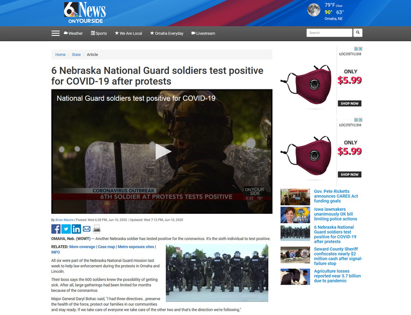 Nebraska National Guard Soldiers Test Positive for COVID-19 Following Protests