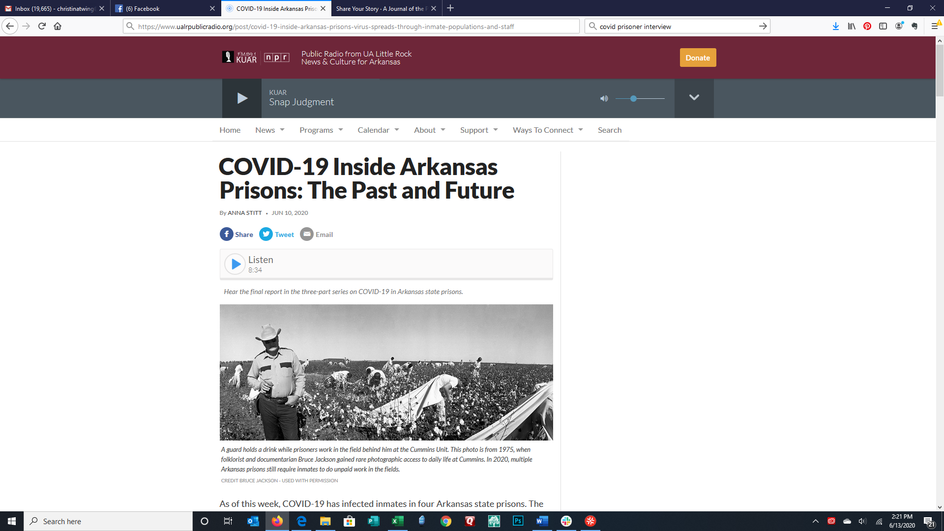 In the final installment of her three part series, covering covid inside Arkansas State prisons, NPR reporter Anna Stitt, looks at the history and future of the Arkansas prison system. Much of her focus has been on the Cummins Unit. A prison opened in 1902 and named after one of the plantations who formerly owned the land. Upon opening and through present day the prison operates a farm that is worked by inmates for no pay. They were still farming cotton, with guards on horseback, holding rifles, in the 1990's. An image that looks like it could have been taken one hundred years ago. This prison has been part of numerous scandals and appears to be in the midst of one today. When the NAACP Legal Defense Fund sued to gain early release for the medically vulnerable the judge denied the request saying there wasn't sufficient proof that the Corrections Department was mishandling the pandemic. Inmates report being denied testing even once exposed to the virus. When inmates attourney's requested security footage the Department of Corrections filed a motion to block the request but the judge allowed the attorney's to see the footage.