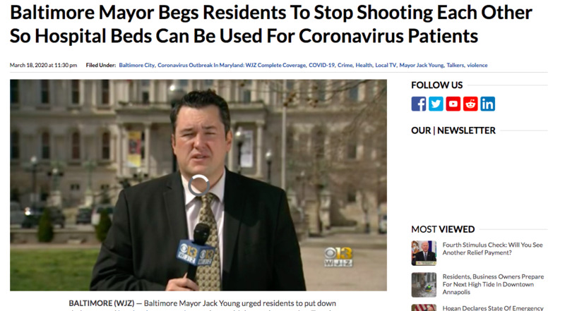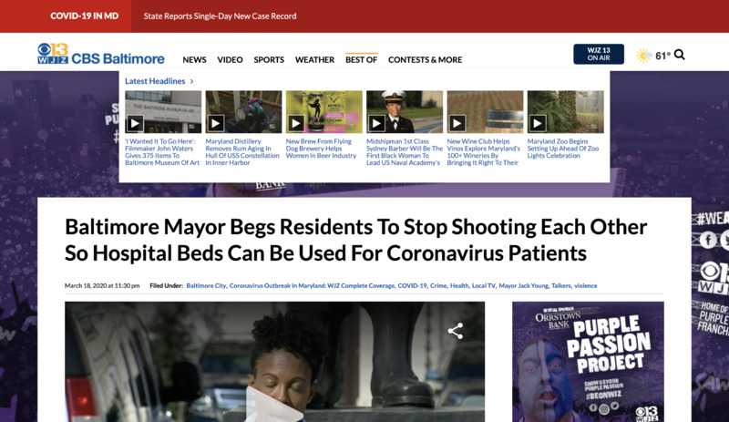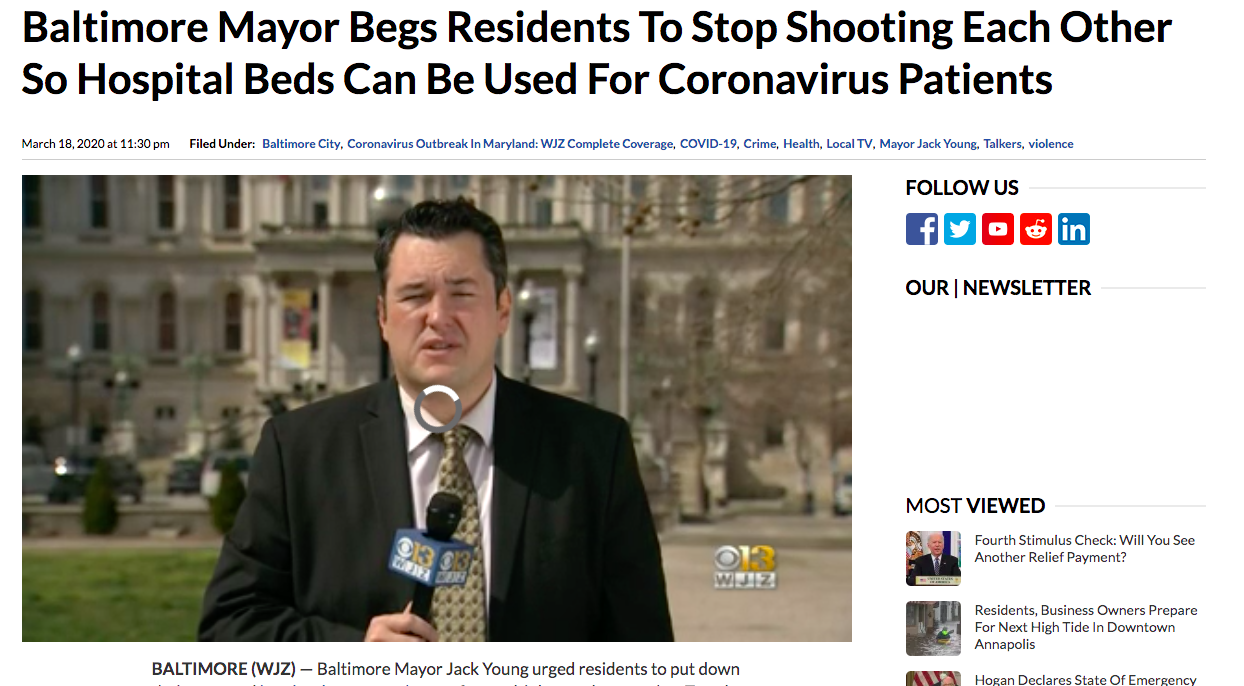 While coronavirus is a horror unique to itself, there are also ripple effects caused by the stress that it is putting on the healthcare system. This manifests itself in hospitals being unable to cope with regular, daily issues; for Baltimore, this is gunshot victims that are either occupying beds that could be used by coronavirus victims, or vice versa.