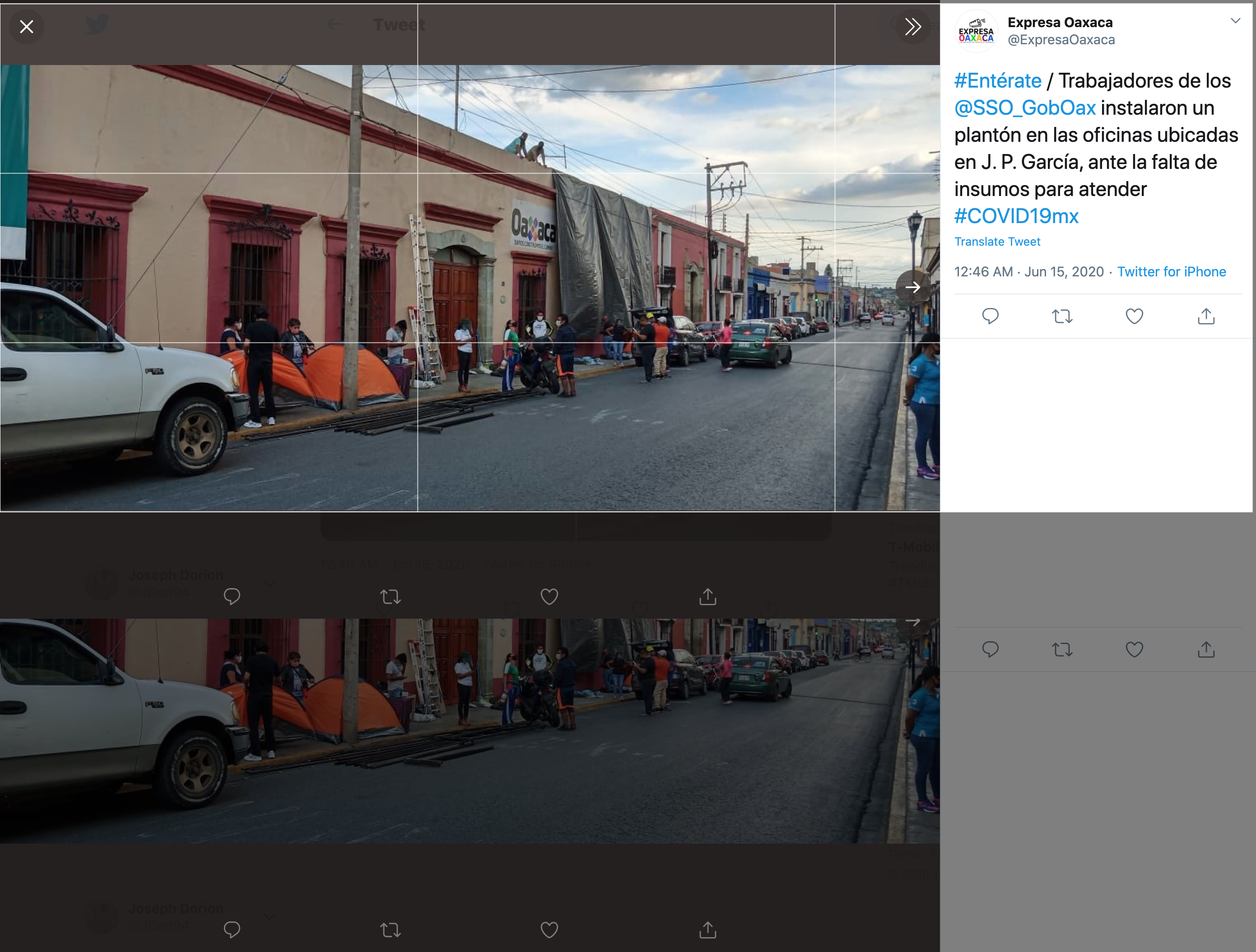 Twitter user @ExpressOaxaca created the tweet, Joey Dorion took a screenshot