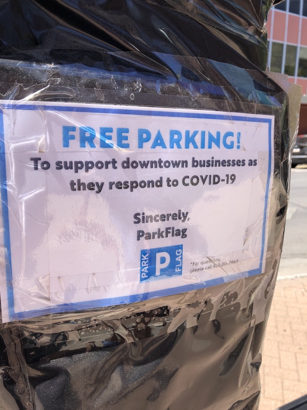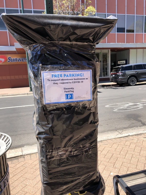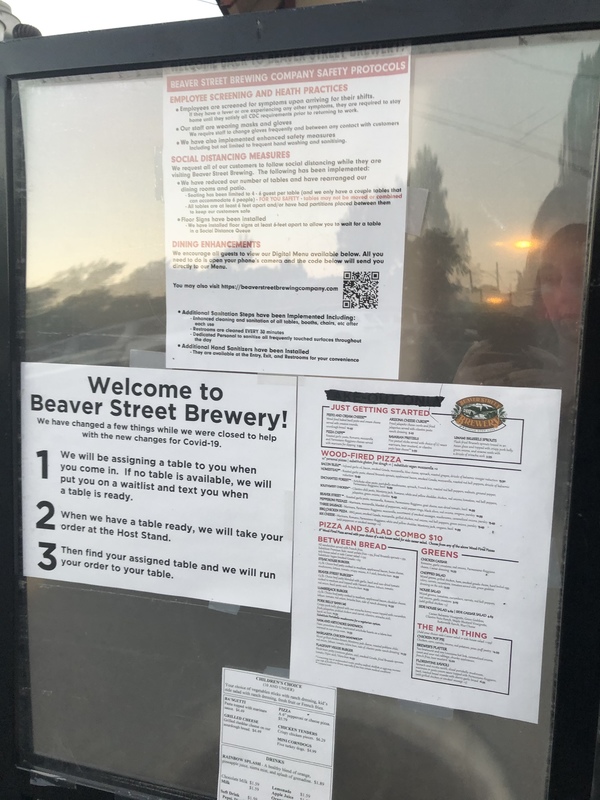 While out and about, most stores and restaurants were open, but with new policies in place. Every store and restaurant required masks for customers and had signs stating such at entrances. Some restaurants still only offered takeout, but others had patio space and limited indoor seating available. The first night we had dinner at Beaver Street Brewery and sat outside. We ordered our food at the bar before we were seated, then it was delivered to our table. There was very little interaction between guests and employees. The second night we did takeout from another local place, The Lumberyard, and took it to a local park for a picnic. Stores were limiting customers, requiring masks and encouraging social distancing by having barriers by the cash registers requiring distance between the cashier and the customer. In the downtown area, all public parking meters were covered, so customers could park for free while venturing out to stores and restaurants.
