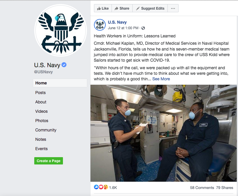 After having been briefly attached to the USS Theodore Roosevelt Carrier Strike Group, the USS Kidd encountered a coronavirus outbreak on board while conducting operations off the coast of South America in April 2020. This screenshot of a posted dated June 12 provides a glimpse into the Navy's early attempts to combat the disease's spread before it could potentially cripple the vessel. Also note the face mask covering the eagle's beak on the US Navy emblem in the upper left corner.