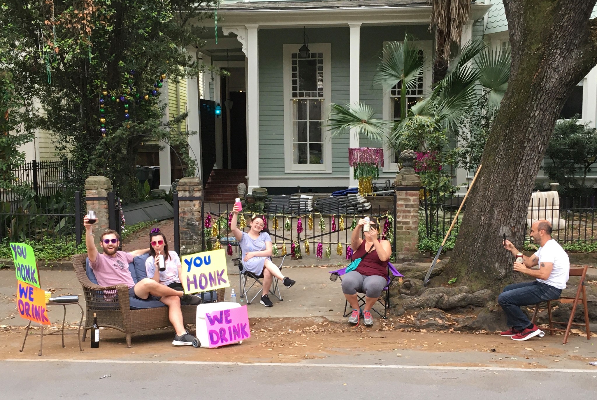 I was biking up St. Charles to Audubon Park on April 4 and these folks were socially distancing as only New Orleanians can