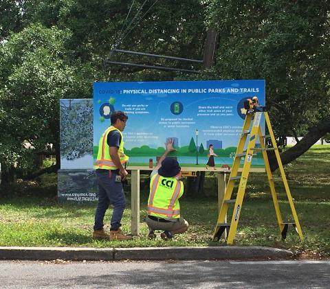 As I was coming down Marconi Dr. in City Park, doing my Crescent City Classic bike ride for Covenant House, at Harrison Ave. I saw city workers putting up a sign about “Physical Distancing in Public Parks and Trails”