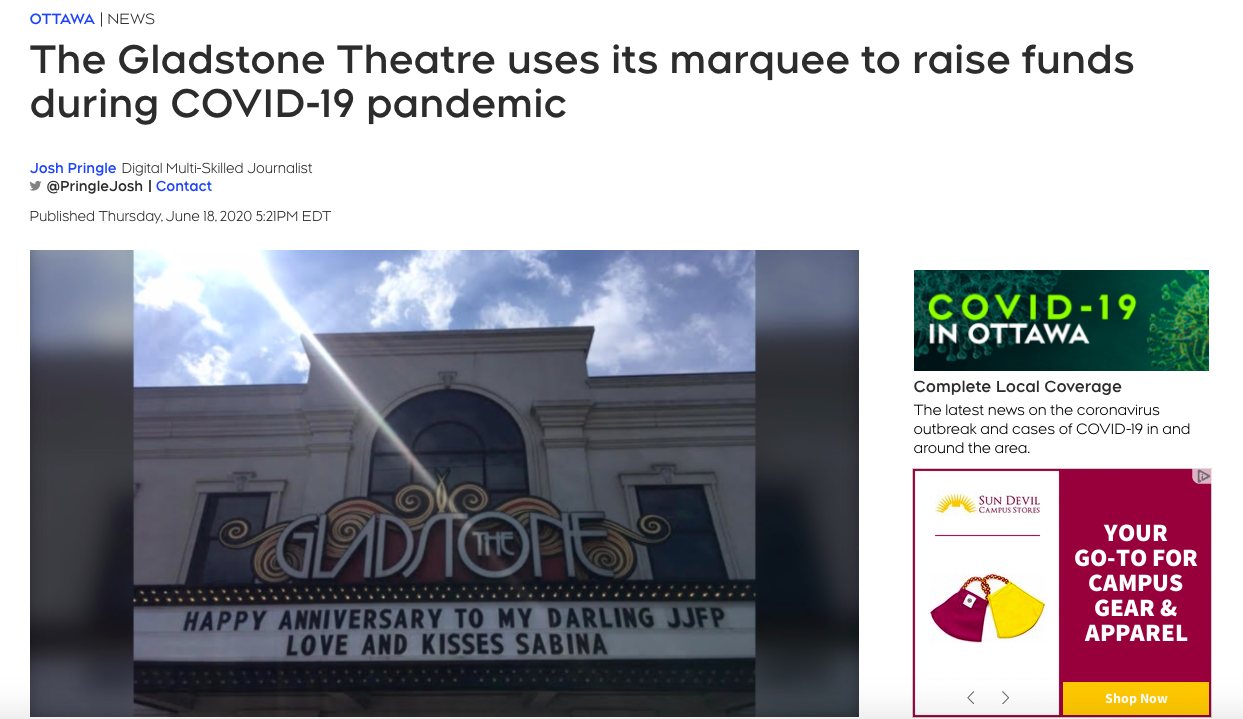 The Gladstone Theatre uses its marquee to raise funds during COVID-19 pandemic
