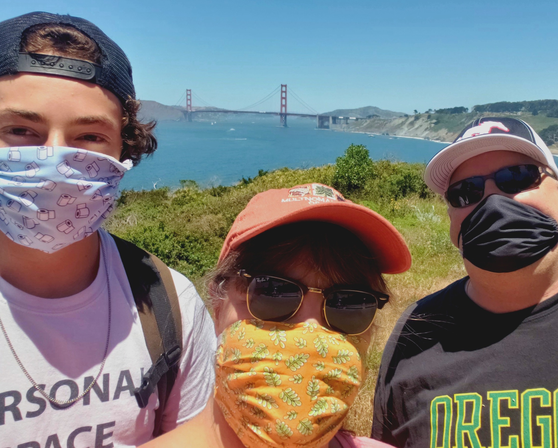 Went on a drive during the COVID 19 shutdown and ended up at an overlook to the Golden Gate Bridge. May 24, 2020 at Seacliff District of SF. The Goldenberg Family, experiencing the outdoors in the new normal.