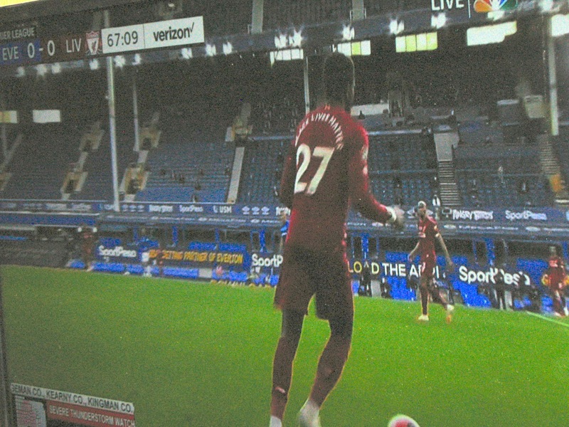 All across the globe, COVID-19 forced sports leagues and tournaments to shut down completely, from Major League Baseball, the NBA, and NHL in the USA, to the the various football leagues in Europe. Not even the 2020 Tokyo Olympic Games were spared, as the IOC announced the Games' postponement until 2021. This photo captures the June return of the English Premier League following its March shutdown, with a match between Liverpool and Everton F.C. broadcasted on NBC. Like the German Bundesliga, players competed in silent stadiums filled with empty seats and strict testing in order to minimize exposure to the virus and prevent a mass outbreak among players and the surrounding community. To enhance the viewing experience, NBC superimposed crowd noise onto the match, although viewers could download an app to opt out of this feature if they so wished. Also, note the players' jerseys, which read "Black Lives Matter," a reflection of the push for racial justice that spread across the world amidst the ongoing coronavirus pandemic.