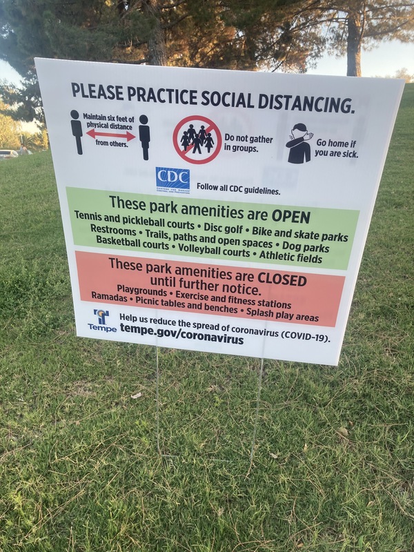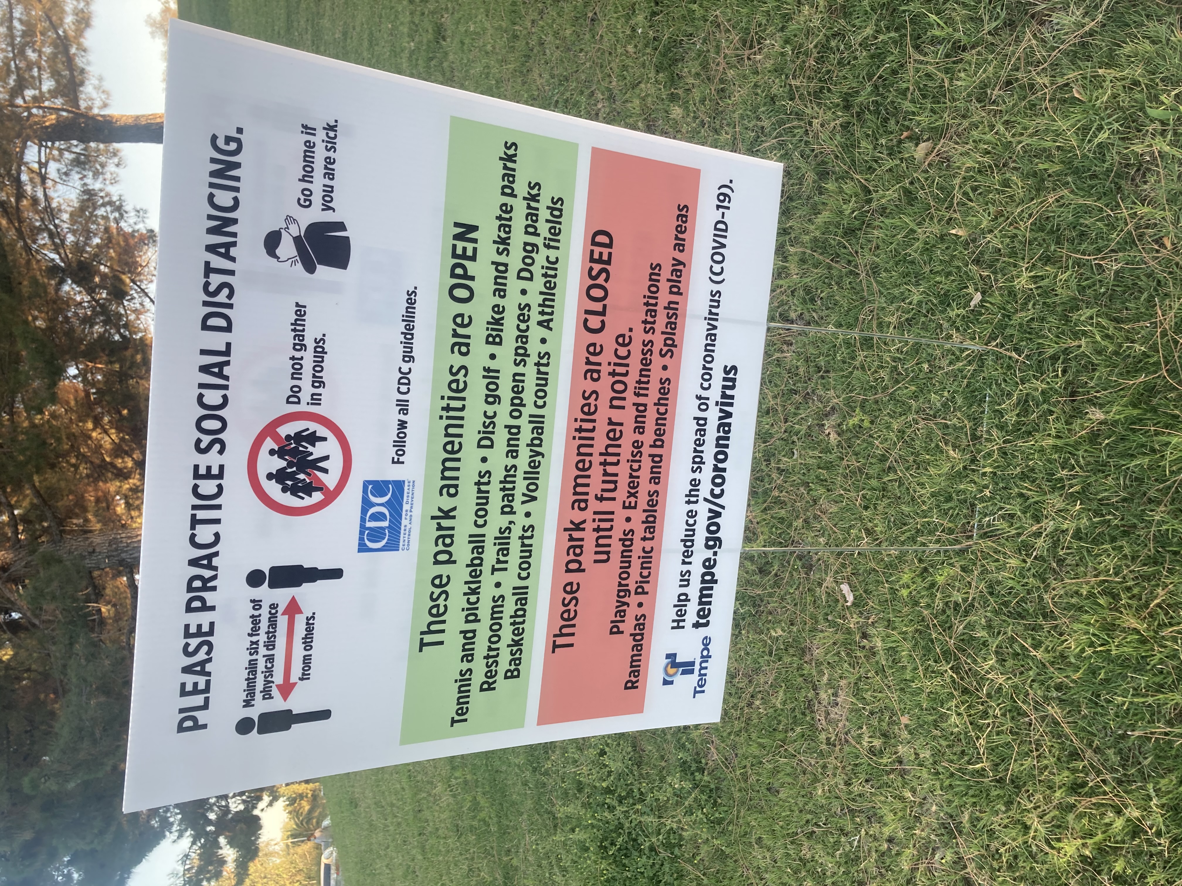 After weeks of quarantine at home, my partner and I decided to try and get out of our house and do something fun. We decided that a park would be most safe, so we donned our masks and headed to Kiwanis Park in Tempe to play some Pokemon Go. Although there were there numerous signs outlining specific measures to keep park-goers safe, the park was split about 50-50 in terms of people wearing and not wearing masks. As we left the park, I heard one woman loudly complaining to her friend "So now I'm supposed to prioritize other people's safety over my comfort?" She was, of course, not wearing a mask.