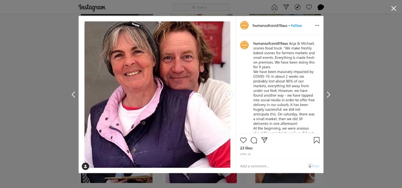 Instagram post on Anja & Michael, scones food truck, and their experience during the pandemic, which was created by a psychology student living in Melbourne who was interested to hear about how COVID-19 was impacting on different peoples’ lives.