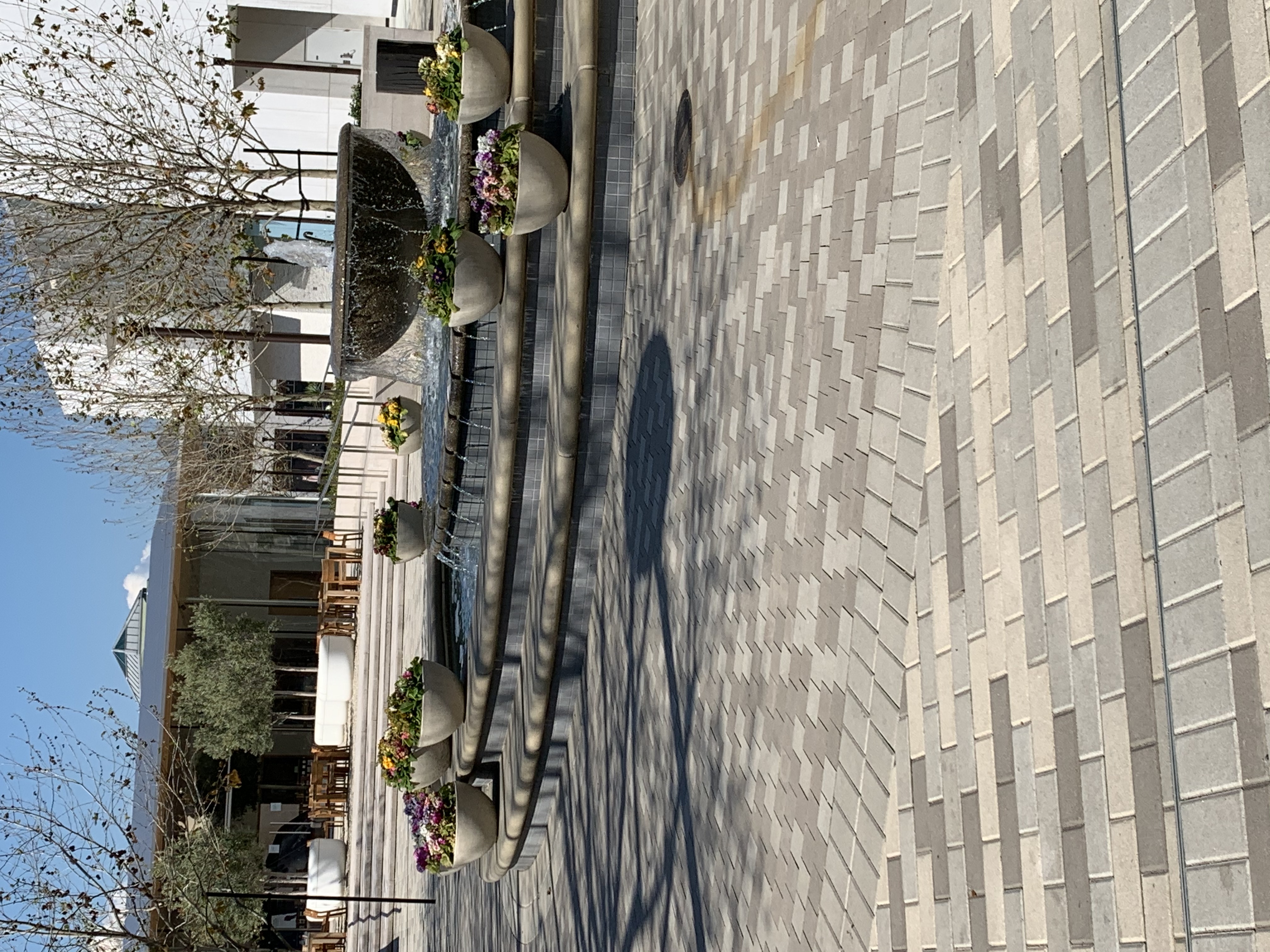 A Campolindo HS photography class assignment was to take photos of some nearby location that tells a story. My senior decided to procrastinate and ended up needing to complete the assignment during the early days of quarantine. A trip to a normally very busy Broadway Plaza shopping center in Walnut Creek on a Saturday turned out to be the perfect location. The only people we saw out there was a man and his son riding bikes past this center fountain area. In one of the pictures, you'll see the Apple store in the distance, completely dark and vacant. It looks like a ghost town. It's not this vacant even on holidays recognized by retail stores.