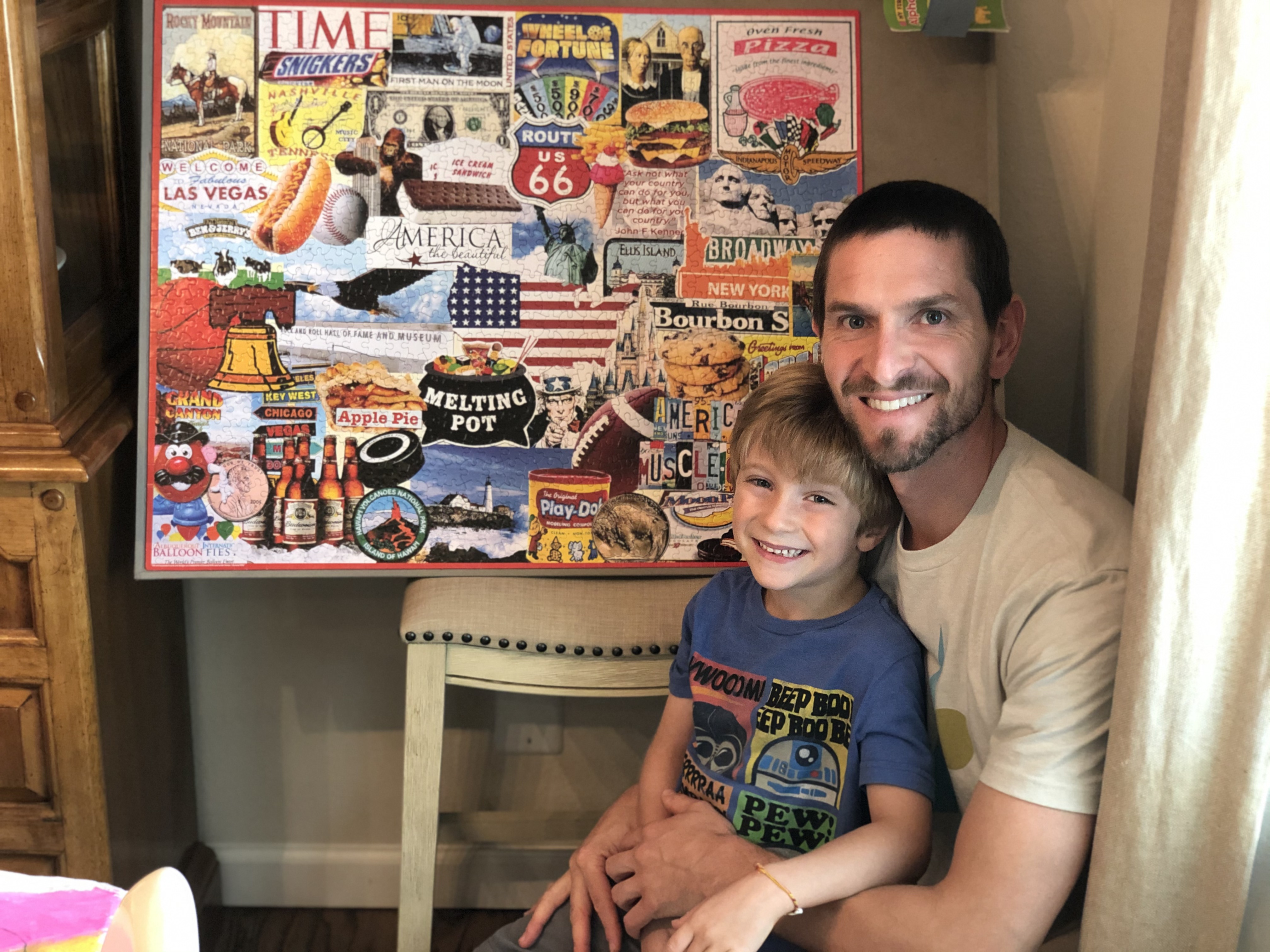 It was dad's turn for a photo with the completed puzzle! These two had a lot of fun completing this puzzle together and did this in just one afternoon. Dad recently got his "summer cut" from his sister, a former hair stylist, that we live with. Our son continues to refuse to allow us to cut his hair. It is getting so long! Tomorrow we will have sheltered-in-place for 100 days. 100 DAYS. This was supposed to last 14 days. How much longer will this be our reality?