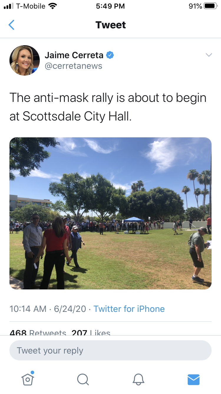 Tweet on Anti Mask Rally in Scottsdale, Arizona