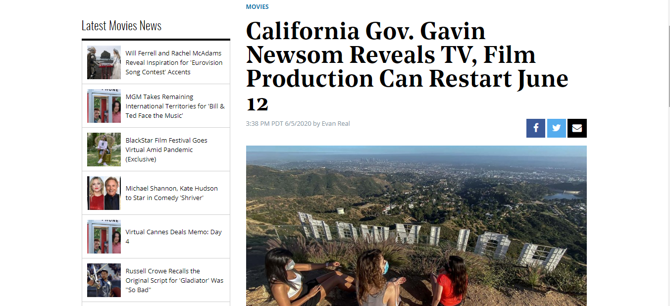 On Friday the governor explained how Hollywood will reopen after months of lockdown due to the novel coronavirus pandemic.
