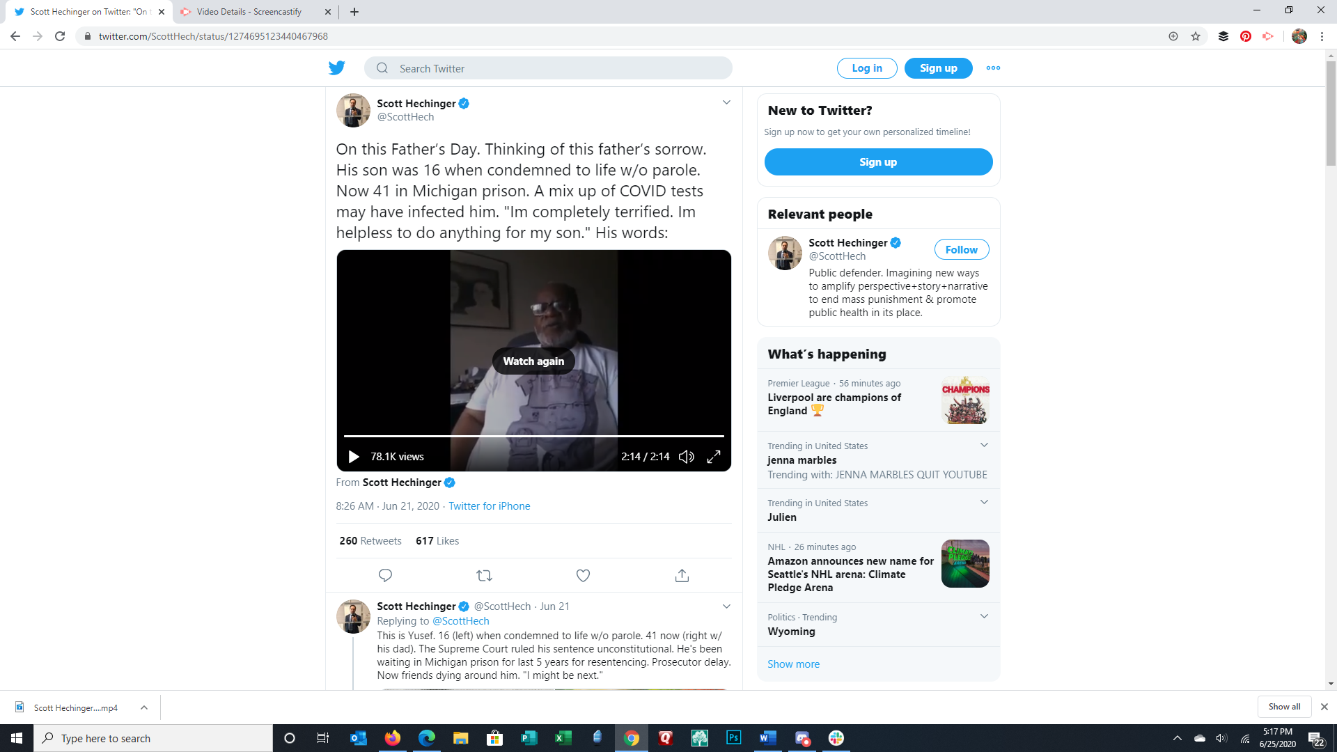 Father, Scott Heshinger, expresses his fear of his son dying in prison from covid-19 in a video he posted on Twitter. He brings to light the conversation that is happening among many. The question becomes is it fair or even humane for someone who has been sentenced to spend time in prison end up dying from covid-19? Some have suggested releasing inmates early or moving them from correctional facilities to house arrest. While others argue this puts public safety in jeopardy.