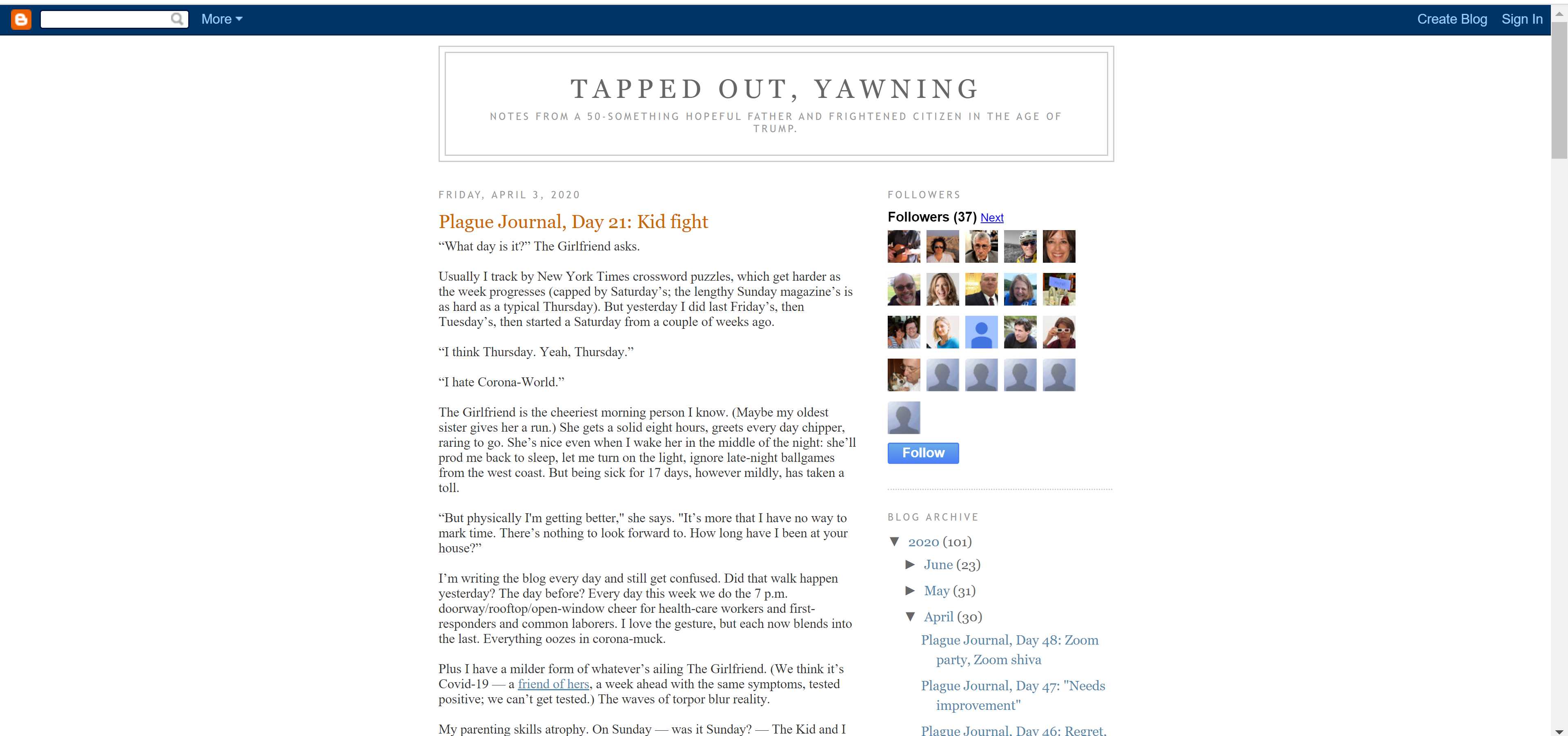 Here's the latest entry, which discusses the time sludge of Corona-World, along with my atrophying parenting skills