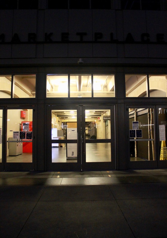 The Maketplace lights were on and it still looked lively, and yet the doors were locked up and there were distancing and COVID-19 caution signs on the doors. I liked the contrast in that.