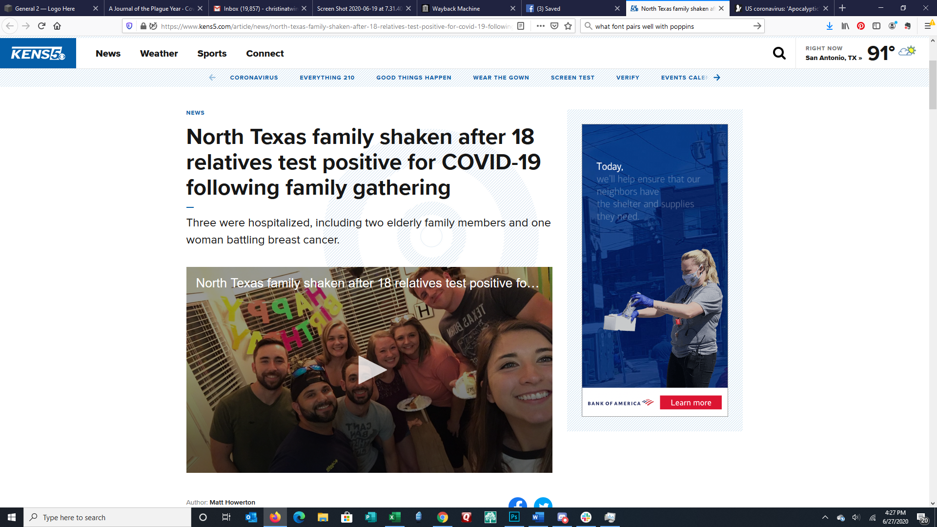 At about five months into the pandemic in the U.S. almost all states have lifted their stay at home order and many people are going back to business as usual. One north Texas family held a surprise 30th birthday party. The host, who thought his cough was due to working construction, unknowingly infected 7 people at the party of 25 attendees. Those seven people went on to infect others in the family and now 18 within the family are positive for covid. Within the family are also a couple, one an EMT and the other a doctor, who both refused to go to the party.
