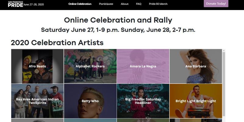 2020 marks the 50th anniversary of the San Francisco Pride Celebrations and Festivals. Due to the COVID-19 pandemic, all in person events were cancelled. The SF Pride organization instead created a virtual celebration. Following tradition, all virtual events are being held the last weekend in June, June 27-28, 2020. SF Pride events are available on Twitch, YouTube and Facebook. Additionally CBS will broadcast all events.