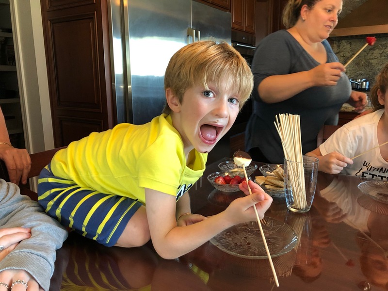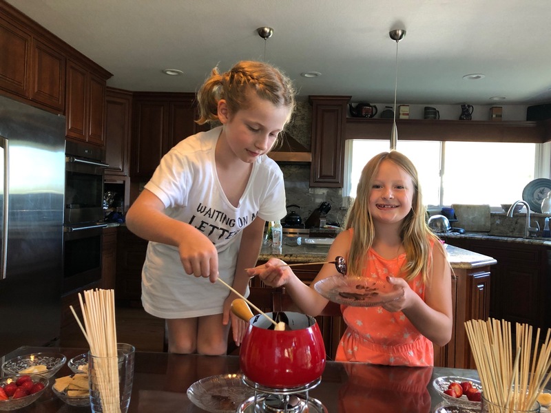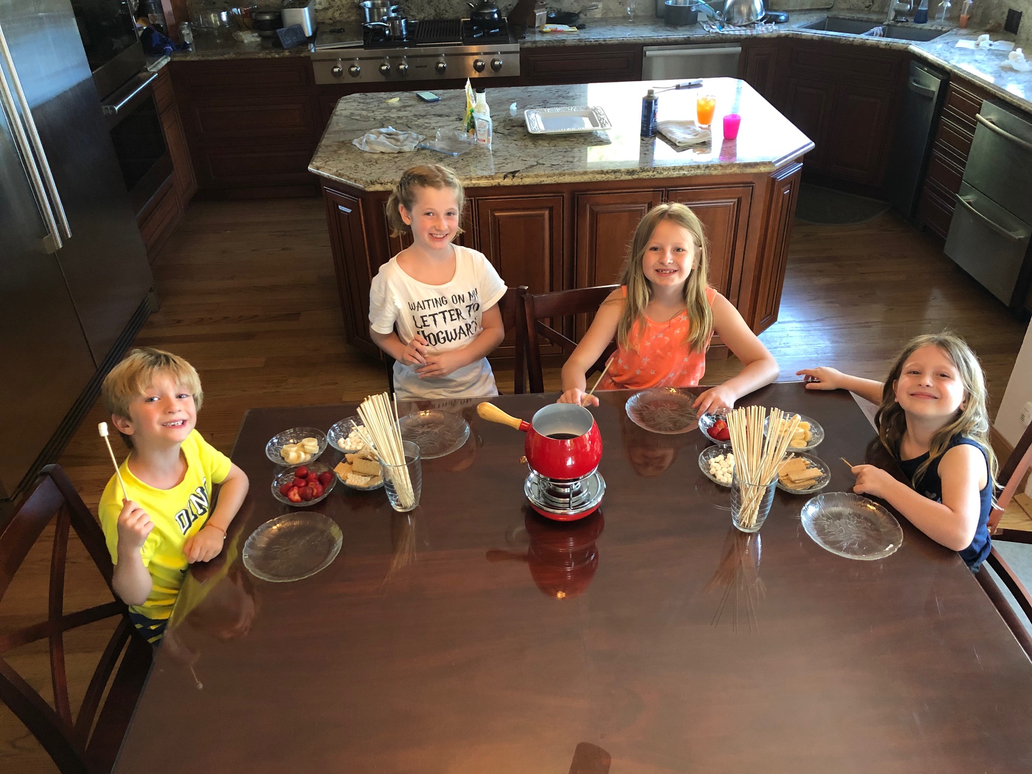 Last weekend, my dad (Grandpa) fell ill. We spent the week anxiously anticipating the results of his Coronavirus test while he quarantined in his bedroom. When the results came back negative, the grandchildren wanted to celebrate. So, my Mom (Grandma) promised them a fondue party. The fondue set in was a wedding gift for my parents, and they had only used it once in their 46 years of marriage (married 04/27/1976). The chocolate fondue was delicious, and the fondue set is yet another relic we've dusted off during this long shelter-in-place.
