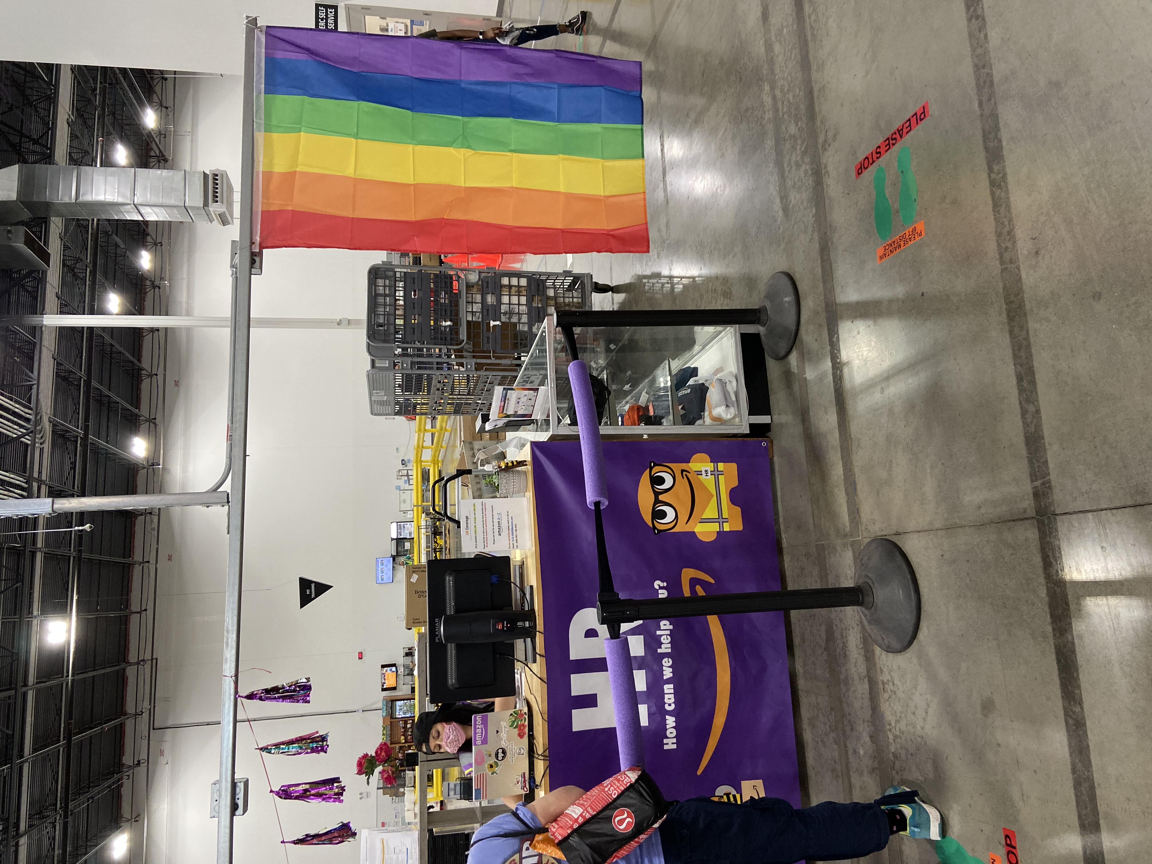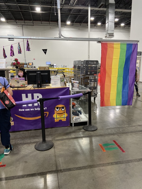 Gay Pride Flag at Amazon Warehouse during Covid-19