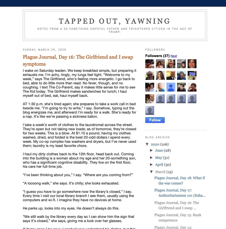 Plague Journal, Day 16: The Girlfriend and I swap symptoms