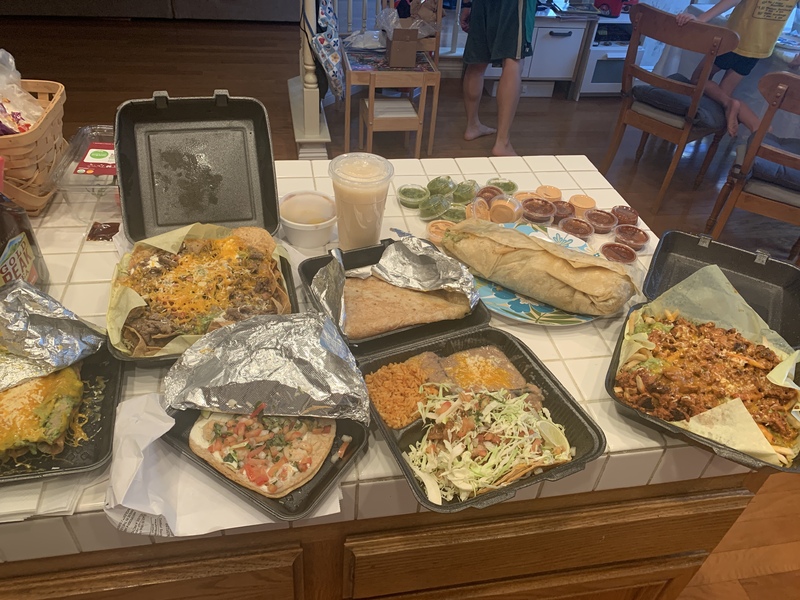 Fear of COVID-19 has kept us from ordering any restaurant food, even take out or delivery, since March. Then, during the second week of June, my kids won a contest at (virtual) Sunday school where the prize was the children’s pastor delivering dinner of the kids’ choice to our house, and my husband’s work gave everyone Grub hub credit for their virtual end of the year party. Worn down by hunger, I relented and we got McDonald’s (for the kids’ prize) and Cali Tacos (from Grubhub). Not having either for so long, we may have gone a little overboard with our orders. It did take 20 minutes before we ate, because I removed all the wrappers wearing gloves, transferred the food to plates, threw all trash outside, and washed vigorously hands before we ate. It’s been two weeks, so I’m hoping it was safe. It’s a strange experience, we were used to having 85 Degrees or Starbucks at least once a week. It’s like when I was a kid and restaurant food was a special treat.