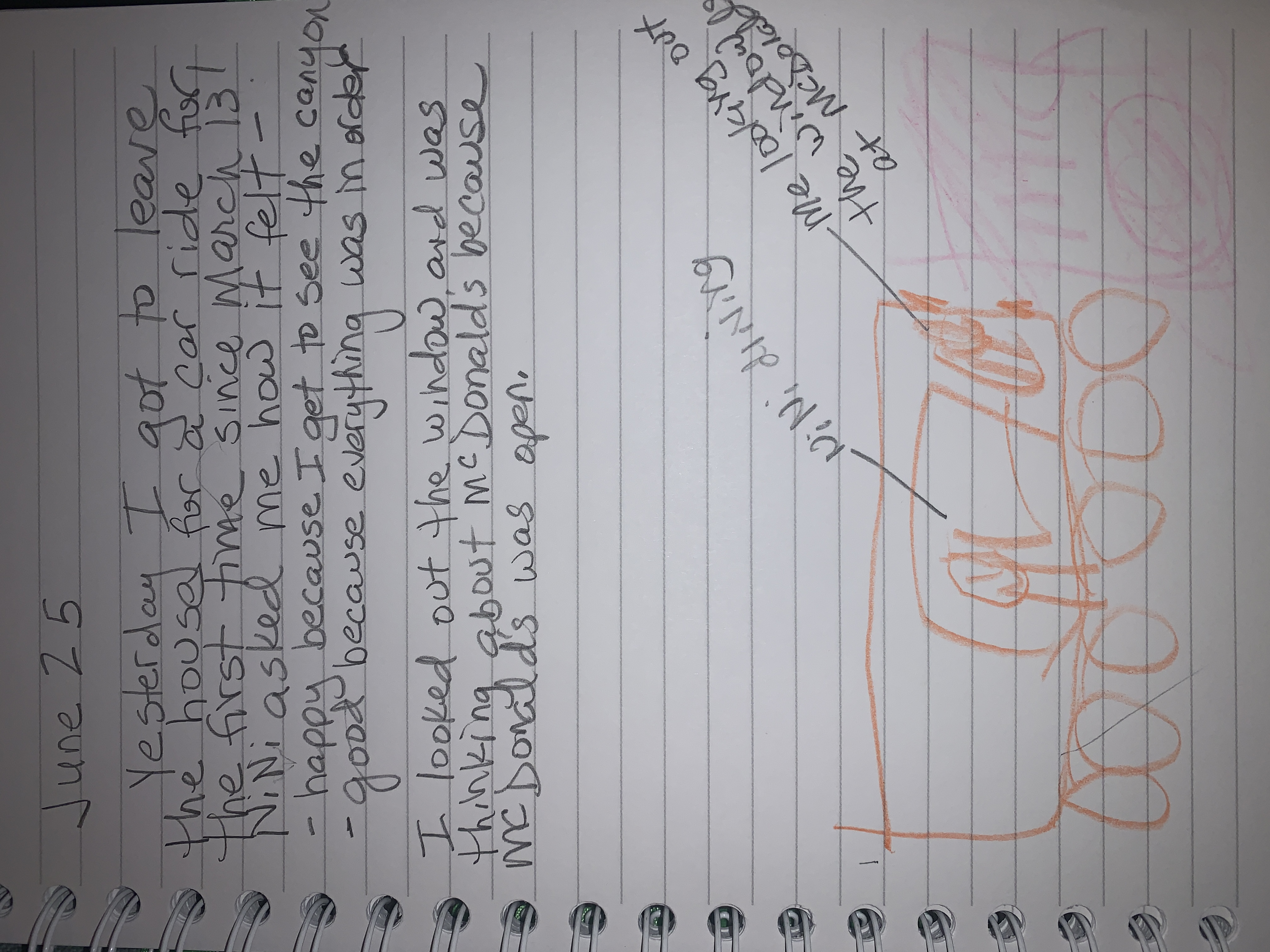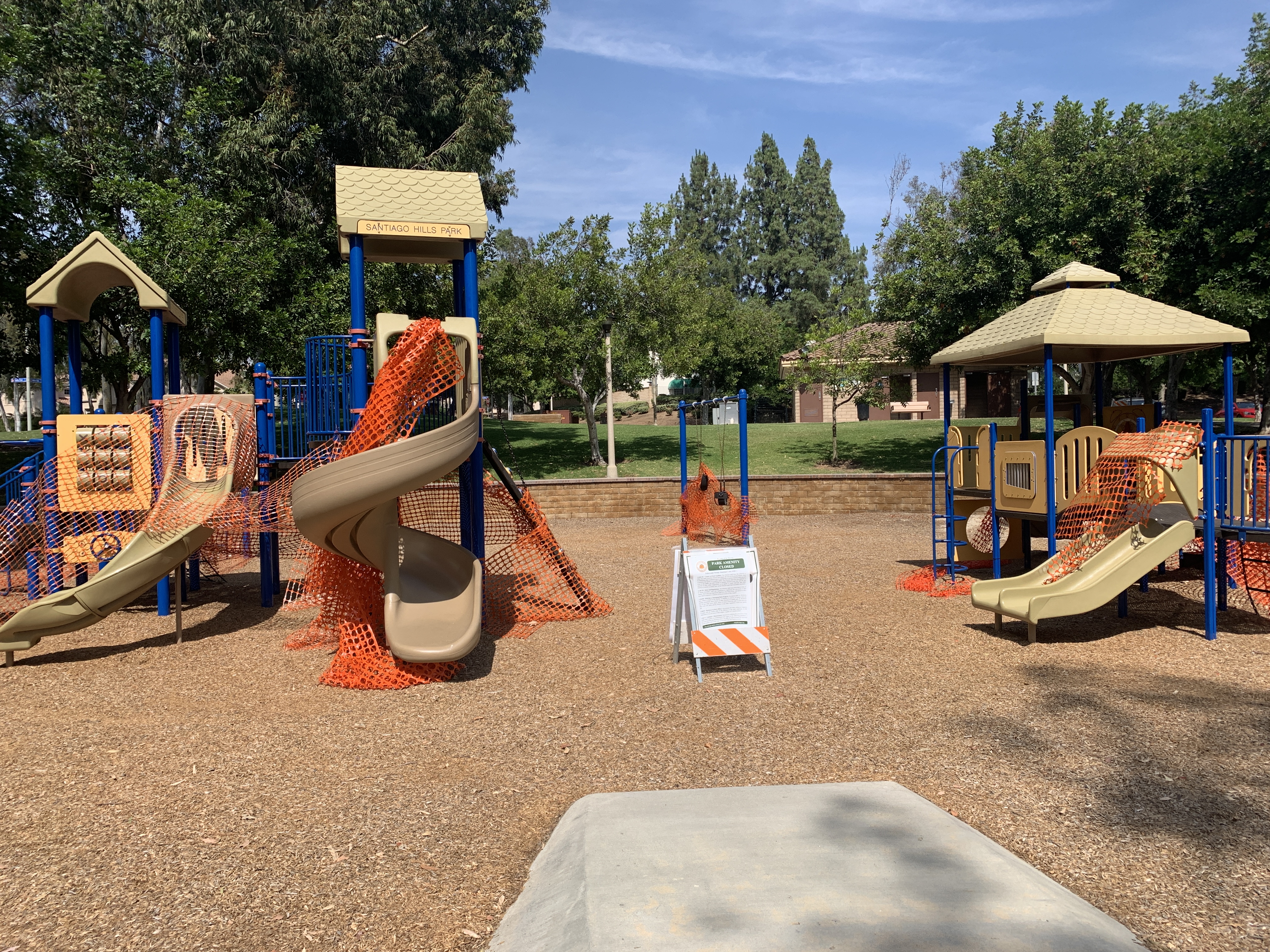 My kids and I have not left our street since March due to the continual rise in cases. Despite an all time high and no desire to venture out, my Girl Scout troop needed their cookie prizes and the materials for our end of the year, virtual “Bridging” ceremony. I decided to drop the items on the girls’ doorsteps, wearing a mask, and not actually ring a doorbell but instead text from the safety of my car. Basically, run out, run back to the car. To do so, I enlisted my mom (who lives with us) to drive to lessen the variables for infection. Realizing my kids might want to see the world outside our street, I allowed them to ride in the car. I figured the risk was minimal because I was coming into contact with no one. Both kids have been keeping “quarantine” journals and I found their reflections interesting. My daughter was agitated that so many people we saw were not wearing masks. When we went out, our area had just been re-opened, despite a continual rise in cases. Our state has seen an 80% increase over the last two weeks and, as of today, is re-closing “indoor businesses.” My son, on the other hand, seemed relieved to see that McDonald’s still existed and had an open sign. He told us he was happy everything was “in order.” It makes me wonder what he thought was happening beyond our street. I did stop to take one picture, of our local playground. I was so surprised that every park we passed had the playgrounds roped off. It makes sense, but was eerie to see. I don’t foresee us venturing out again soon.