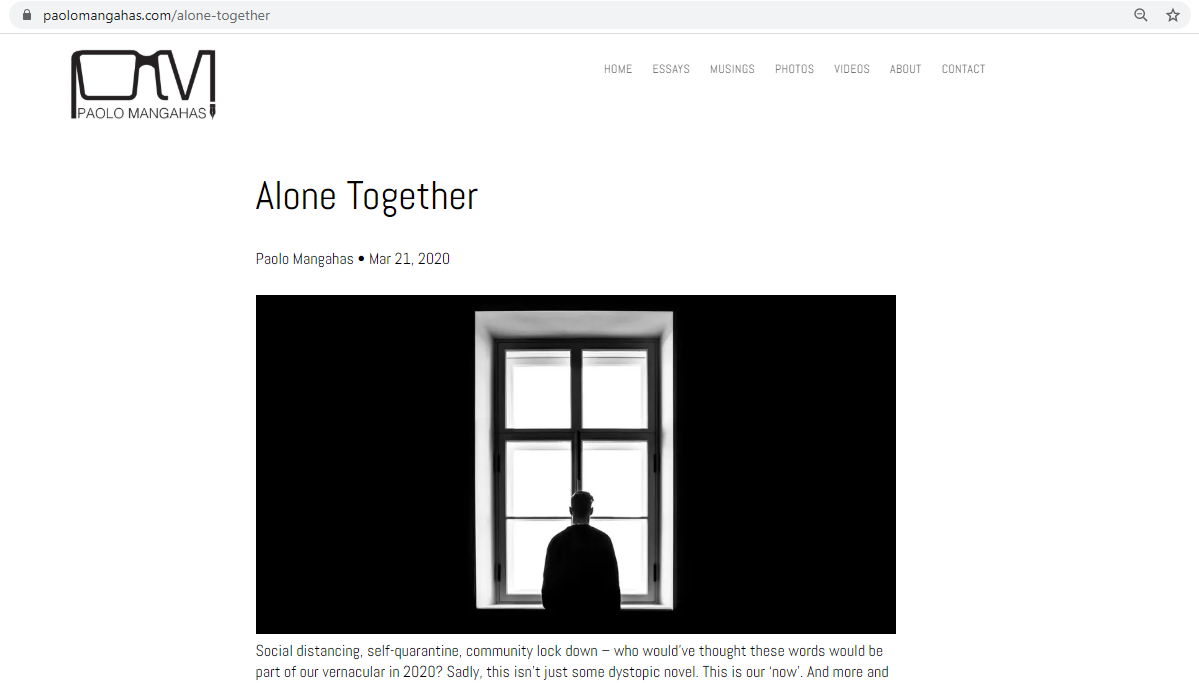 I wrote this short piece to remind people to connect with each other in a more meaningful way, at least virtually for now, and reach out to those who may be feeling alone.