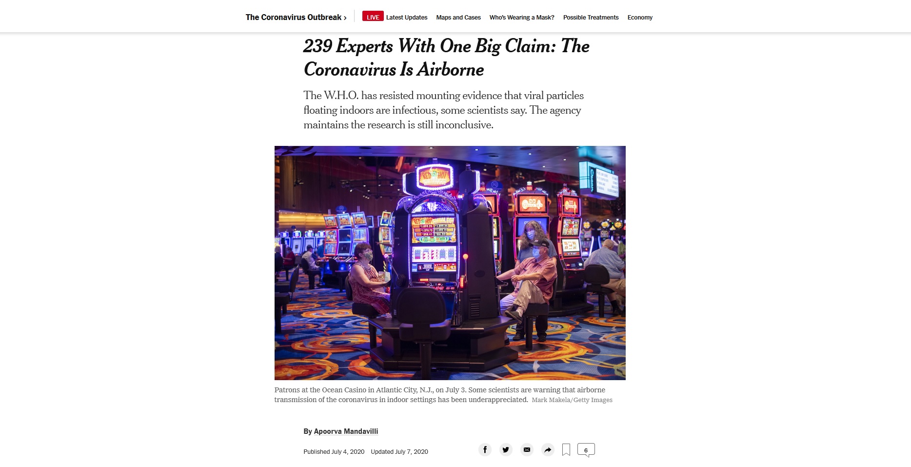 Link to the NYT article (https://www.nytimes.com/2020/07/04/health/239-experts-with-1-big-claim-the-coronavirus-is-airborne.html)