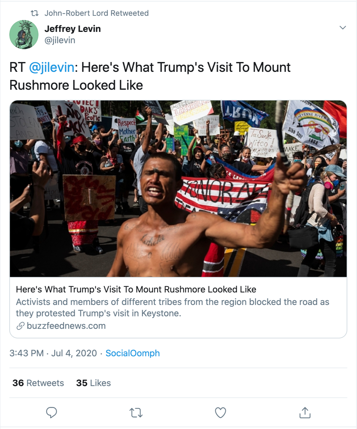 As the 4th of July weekend commenced, different sections of the country were split: quarantine, masks, and social distancing for a fairly quiet holiday or continue on with business as usual. In the tweet, we are invited to view what a 4th of July celebration looked like at Mount Rushmore. There were masks amongst protestors, amongst some attendees, and very few from the President's personal entourage.