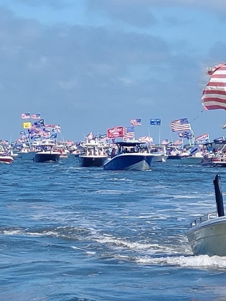 At this point, Trump hadn't held any rallies yet, so social distancing recommendations were still accepted. This one one such rally in Clearwater, FL. The residents who owned boats decorated them and went out together showing their support for Trump's relection.
