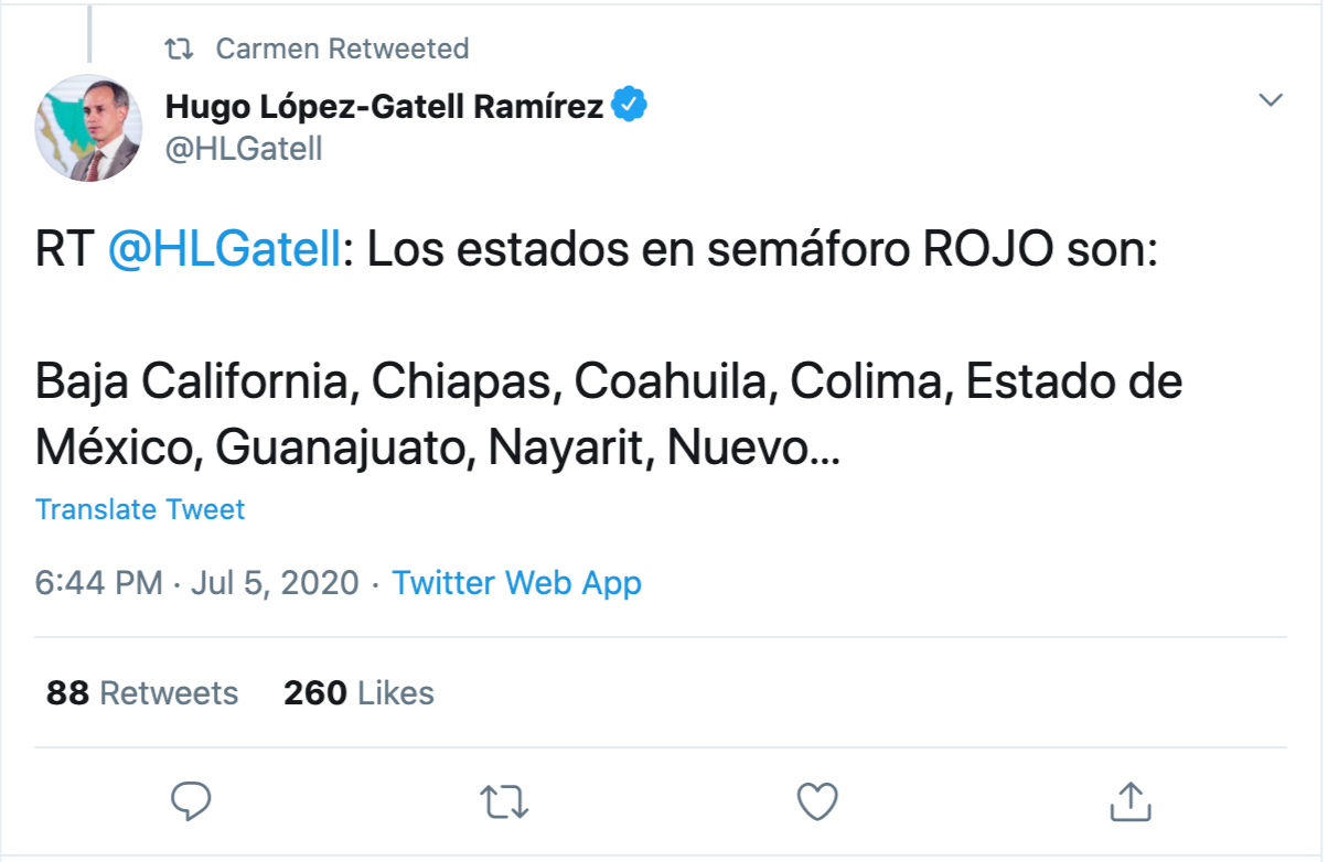 Twitter user @CarmenLibertadA retweeted Twitter user @HLGatell