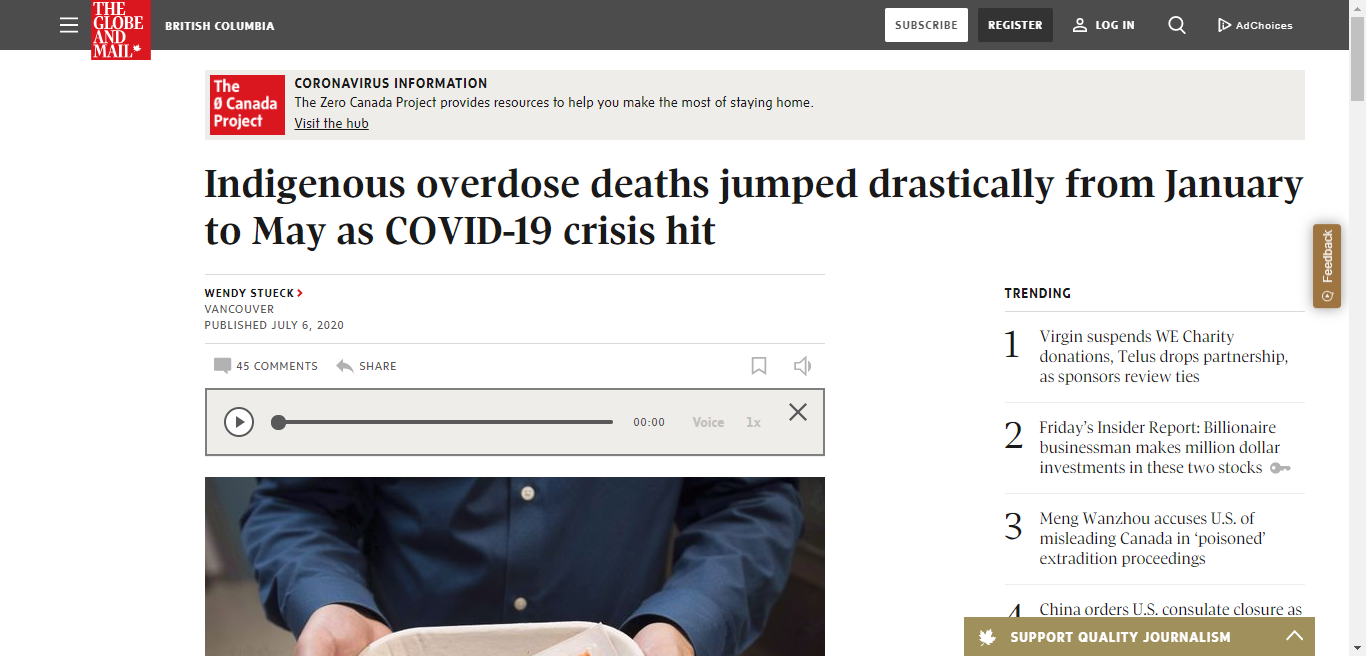 Indigenous overdose deaths jumped drastically from January to May as COVID-19 crisis hit