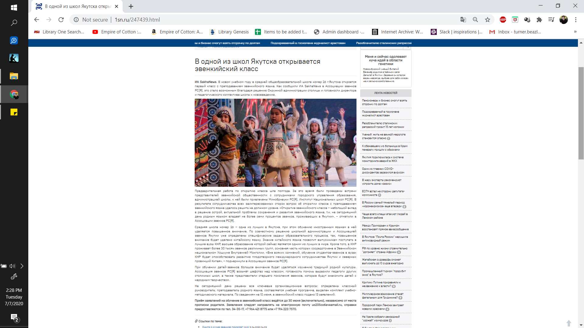 "In the new academic year, the first class with the teaching of the Evenki language will open in secondary school number 26 in Yakutsk. As the Evenki Association of RS (Y) told SakhaNews, this was made possible thanks to the decision of the district administration of the capital and the readiness of the school director and teaching staff to innovate."