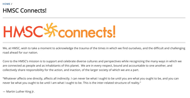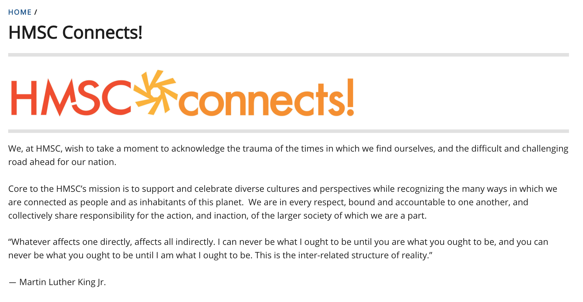 Harvard Museums of Science and Culture offers HMSC Connects, programming built to "acknowledge the trauma of the times." The programming includes virtual programming, a podcast, online resources, coloring pages, and family activities.