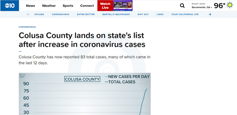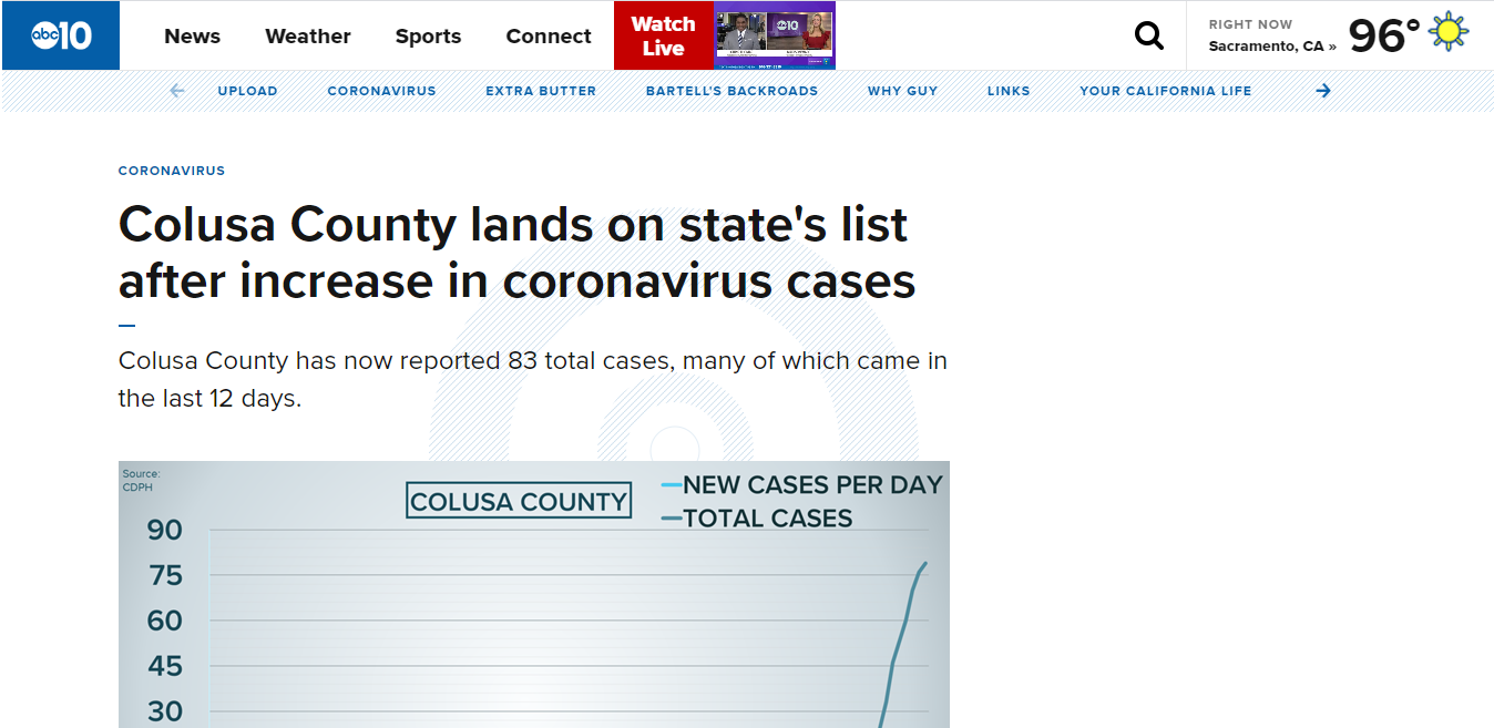 Colusa County Lands on State's List After Increase in Coronavirus Cases