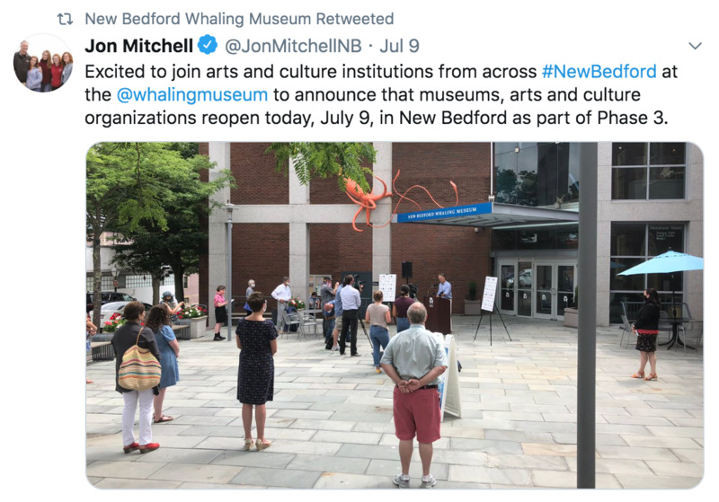 Mayor Jon Mitchell of New Bedford joins arts and culture institutions from across New Bedford at the New Bedford Whaling Museum to announce that museums, arts and culture organizations will reopen on July 9 as part of Phase 3.