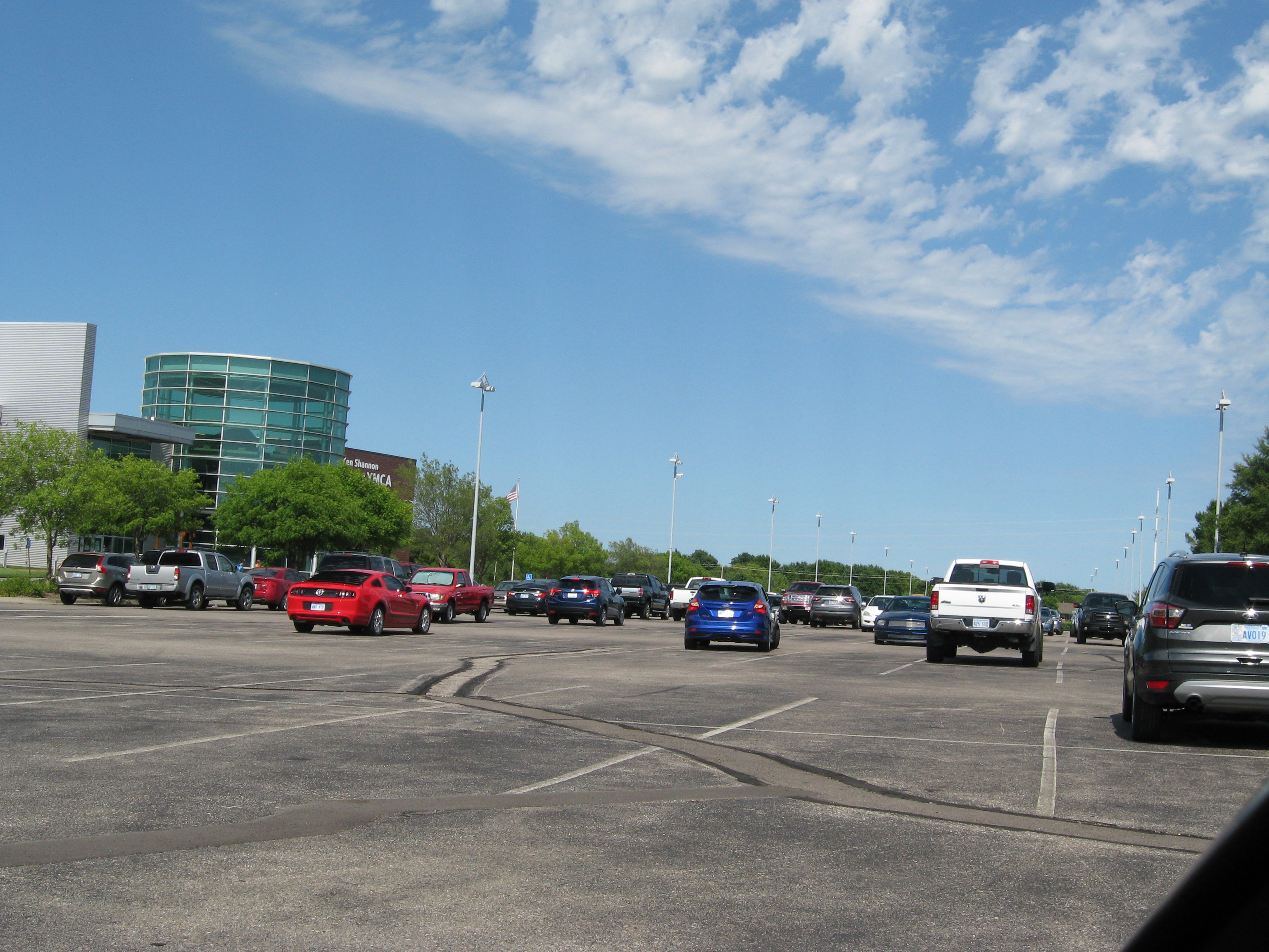 YMCAs reopened with restrictions beginning on May 18, although in-person group classes did not reconvene. This photo shows a fair number of vehicles at this YMCA facility in west Wichita, Kansas, and while the city's late June order closed municipal pools and water parks, this did not apply to aquatic centers managed by private entities. Nevertheless, patrons appear to be spaced out on the water slide, with a lifeguard at the top managing the queue. These photos reveal how people in Wichita were attempting to confront the pandemic while retaining some semblance of normalcy in their daily lives, but on the same day these pictures were taken, the Kansas Department of Health and the Environment announced 1,000 new cases in the state, bringing its total to 18,611, with 2,074 of those in Sedgwick County. A week before, the state's total was 15,919.