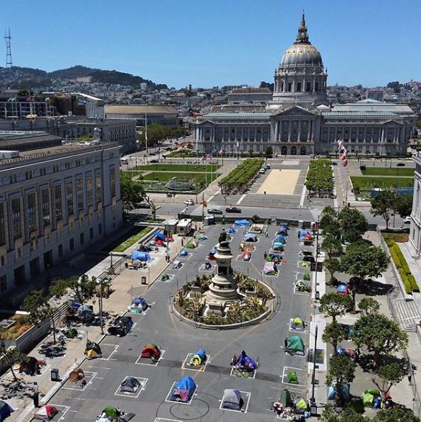 Socially Distanced Homeless Encampments, San Francisco City Hall