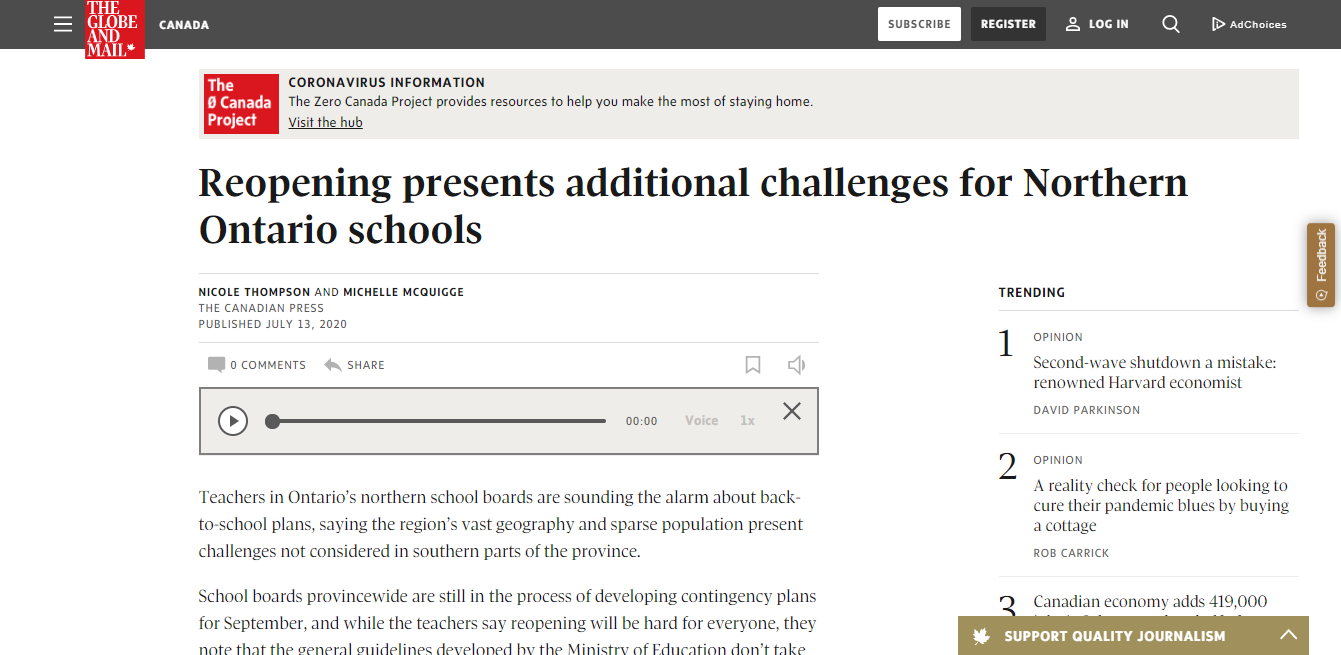 "In one school, she said, there’s one full-time teacher, a part-time teacher and an education assistant. There’s no administrator, which raises a new host of problems during a pandemic.
