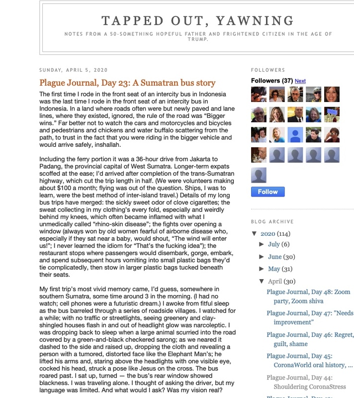 I'm keeping a Covid-19 journal. Today's entry, with more thoughts about my time in Indonesia, its parallels with New York City in CoronaWorld, and a bit about baking: